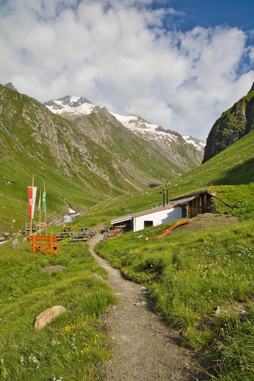 Starting from Matrei i.O. you reach the Zunigalm through a beautiful mountain forest after about 4 hours walking time. A stop at the Zunigalm is always worthwhile, it was already mentioned in the Gault Millau. From here the path leads westward, past the Arnitzalm over the ridge and valley cuts to the Wetterkreuz hut. This base can also be reached by hut cab from Virgen and can therefore be chosen as an alternative start. On the second section of the Lasörling High Trail you reach the Zupalsee Hut via the Heflerhöhe, which is overgrown with dwarf shrub heath. Continue over the Lasörling ridge with a magnificent panoramic view over the valleys shining in dark green. Above, in contrast, the shining peaks and snow surfaces of the Venice massif. You can also take refreshment at the Merschenalm, before arriving at the Lasörling hut after another 2h of walking. The Lasörling hut is the starting point for the ascent to the Lasörling (3,098 m) and several alpine crossings.