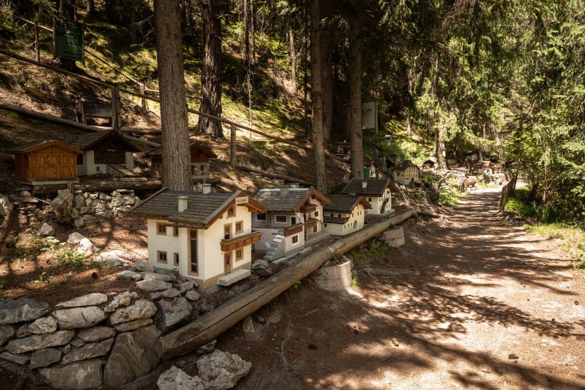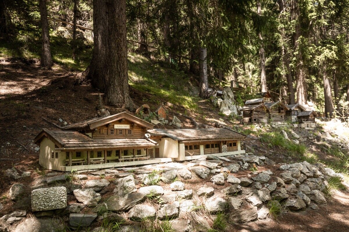 From the Pfunds tourist office, the route leads through the district of Stuben towards the Reschen Pass. At Hotel Traube, turn right uphill towards Kobl, then cross the main road at the gas station and continue to the Kobl/Wand junction. Following the Kobler Way, a path soon branches off to the left into the forest. Along the way, you’ll pass a forest educational trail and a fountain with fresh spring water before reaching the lovingly crafted miniature houses “Mini Fundus,” built by local pensioners. A Kneipp facility just beyond offers a refreshing stop. The return follows the same route back to the starting point.