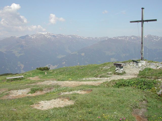 Now the trail is rising slightly up to the summit (2166m). At this part there is a sign to the “Kotahorn-Alm”. Shortly you have reached the summit, where you have a wonderful view. The descent goes up through a very steep and stony path back to the mountain-restaurant Gerlosstein. From here you can walk up to the Sonnalm. The second variant is: You can follow the signs “Kotahorn-Alm”. From there, there is a well-marked path down to Sonnalm.
