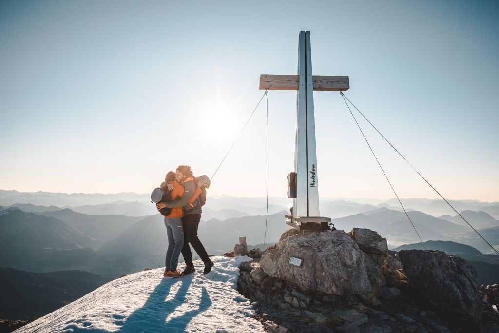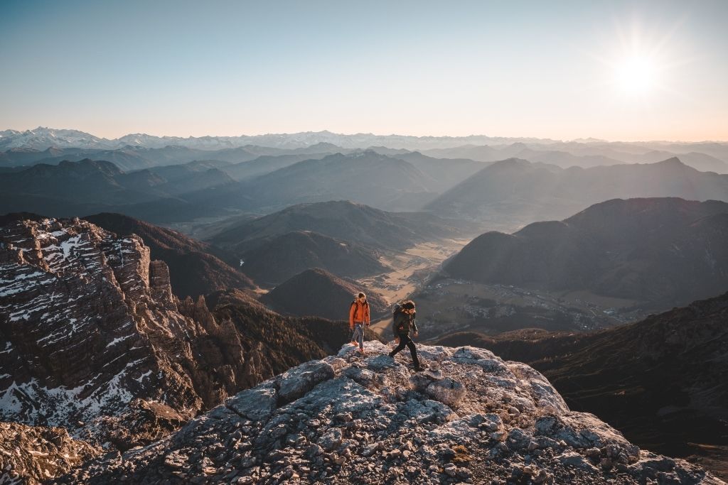 Enjoying the morning sun way up high! The day starts with the ascent to the Waidringer Nieder, where you are already almost "at the top". From the shady north side of the Kleines Hinterhorn, you return to the sunny ridge and continue towards the Mitterhorn (2,506 m), where you reach the highest point on the Nuaracher Höhenweg. Take a rest, enjoy the low and wide views!
