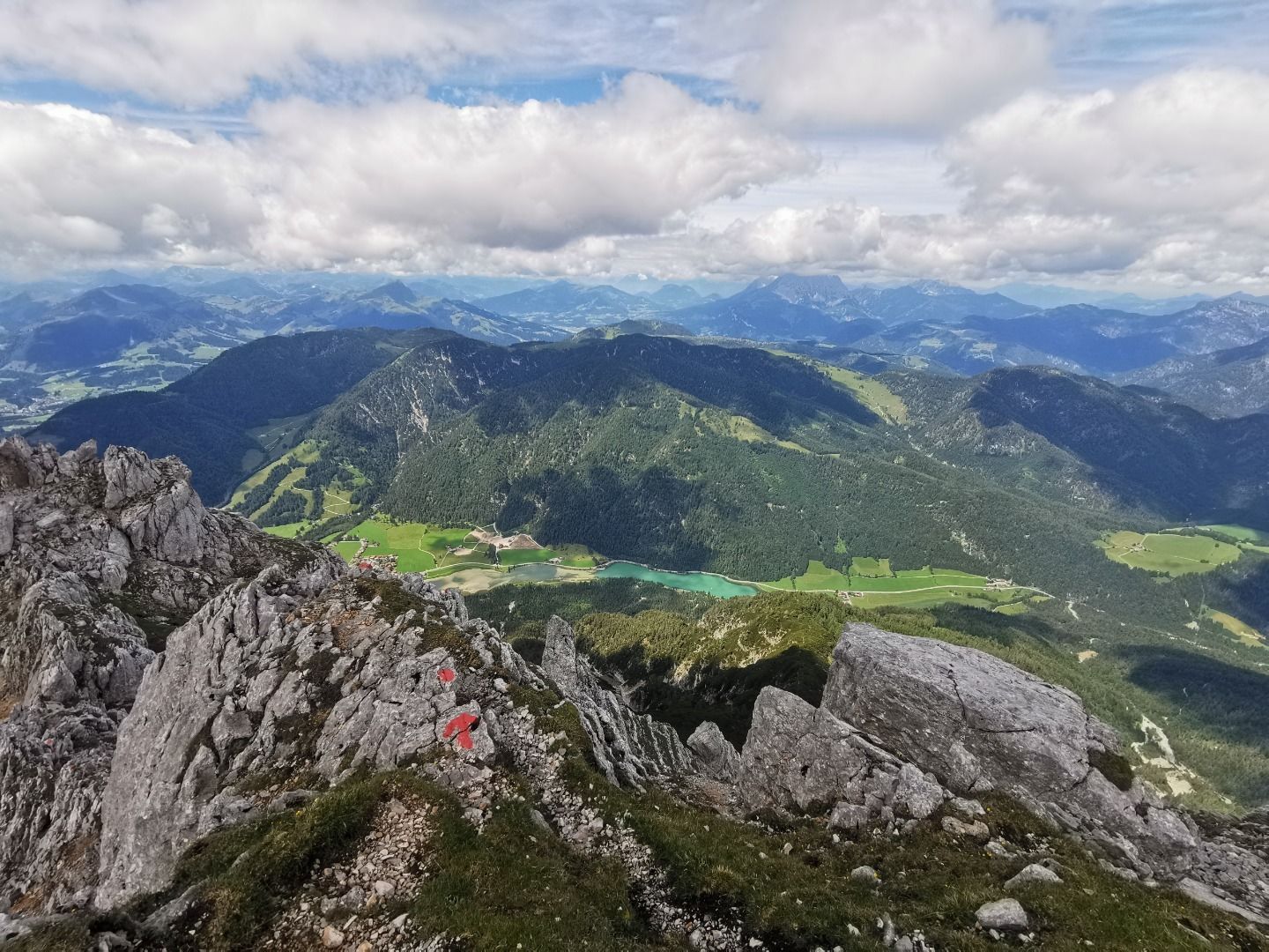 The rest of the trail along the exposed ridge requires surefootedness. Östliches Rothorn and Großes Rothorn are the other peaks, which are not very strenuous in the ascent. The path into the valley (No. 612) is accompanied by impressive rock formations. The ridge section between Schaflegg and Ulrichshorn is a great challenge: short and secured, but steep and exposed! The further way down from the Ulrichshorn is crisp, steep and partly secured. The Kneipp facility at the end of the descent is a relief for tired feet and knees! Return via the hiking trail to the starting point in Weißleiten.