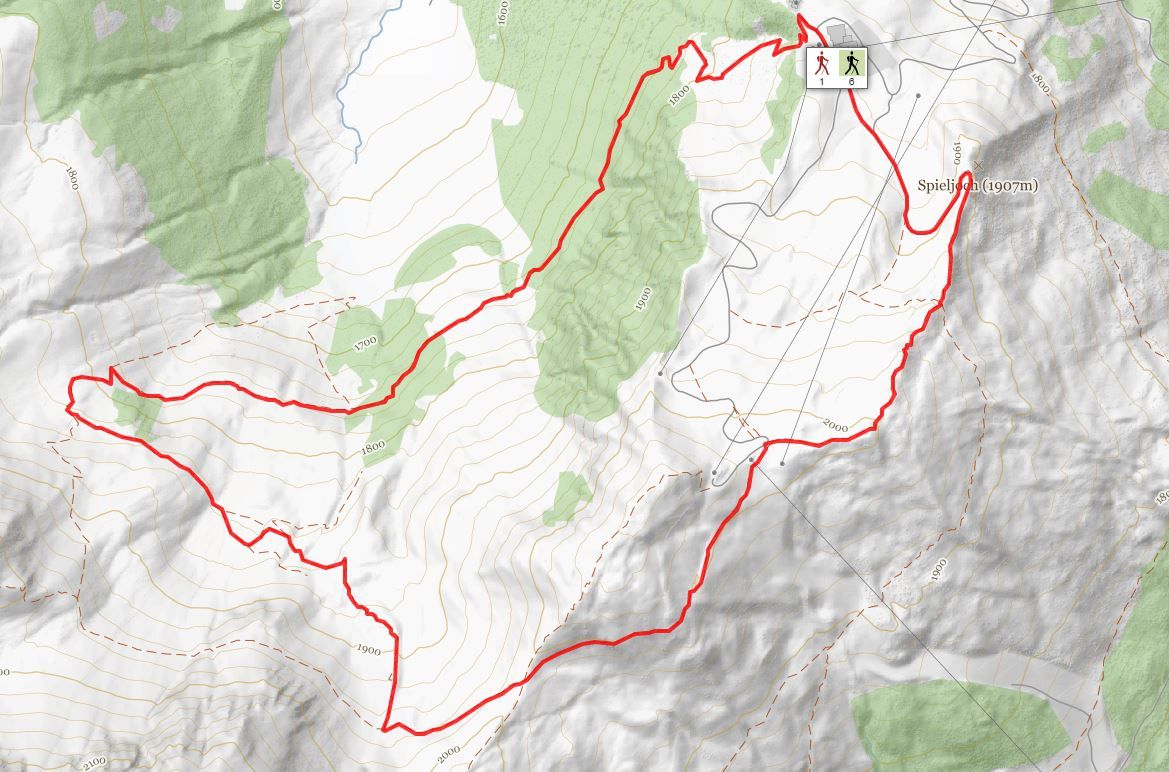 Departing from the mountain station, the beautifully situated Knappensteig trail leads to the right and past the Arzjoch chair lift. Taking in small streams and lush meadows of Alpine flowers, this route offers constant views of Kellerjoch saddle as it leads you straight to the visitor mine at 1783 m. Guided tours are available from early July to late September (every day except Saturday). From the visitor mine, hike uphill across Alpine pastures and past blocks of rock to reach the junction for Onkeljoch saddle/Gartalm Hochleger via Falschegg/Spieljochbahn mountain station. You can then begin your descent to the Spieljoch summit cross (1920 m) and then along a wide hiking trail back to the Spieljochbahn cable car. This route comes highly recommended even without a visit to the mine!