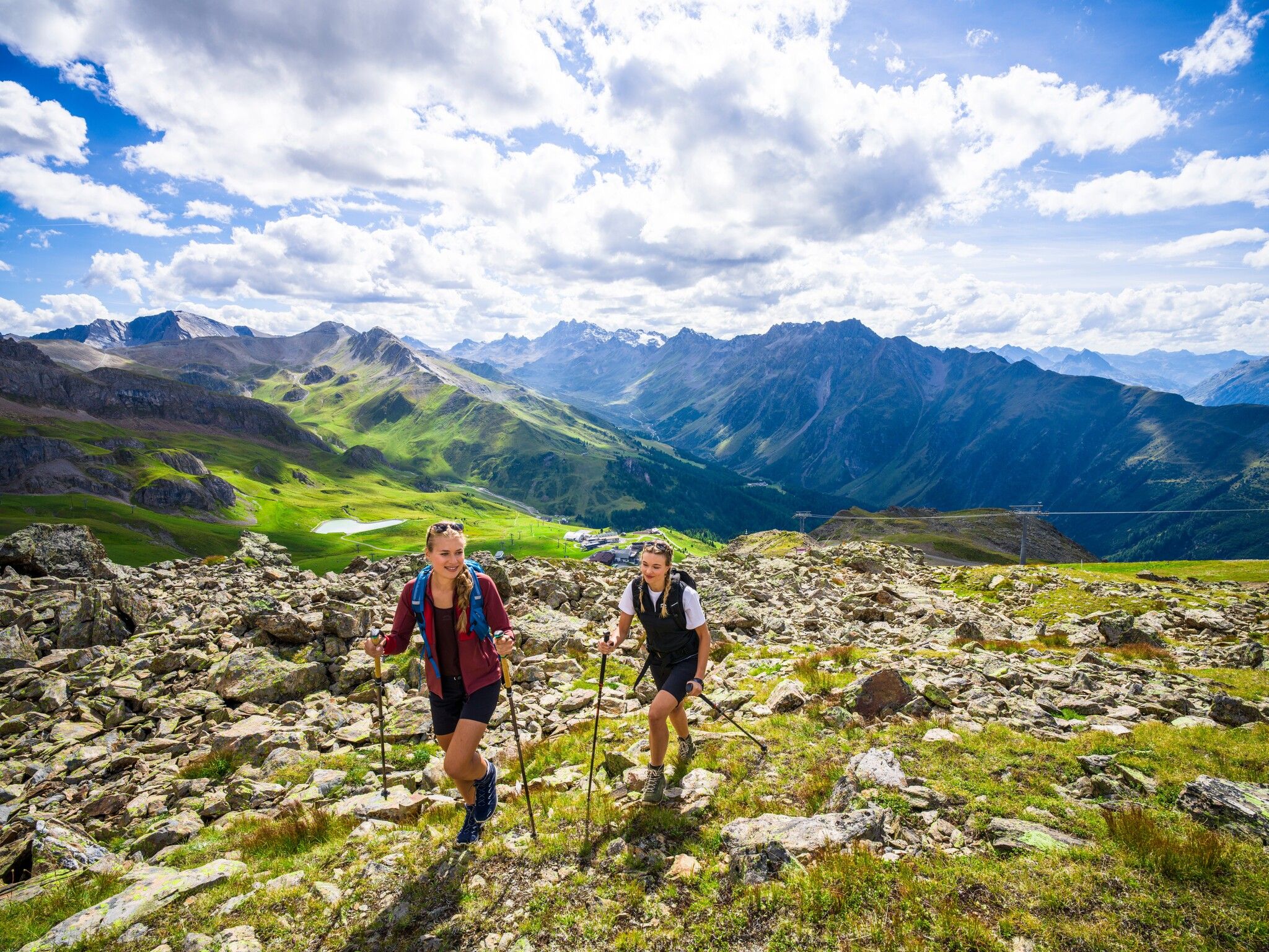 Flimjoch at 2,757 metres above sea level. From Flimjoch, the trail runs downhill, taking
