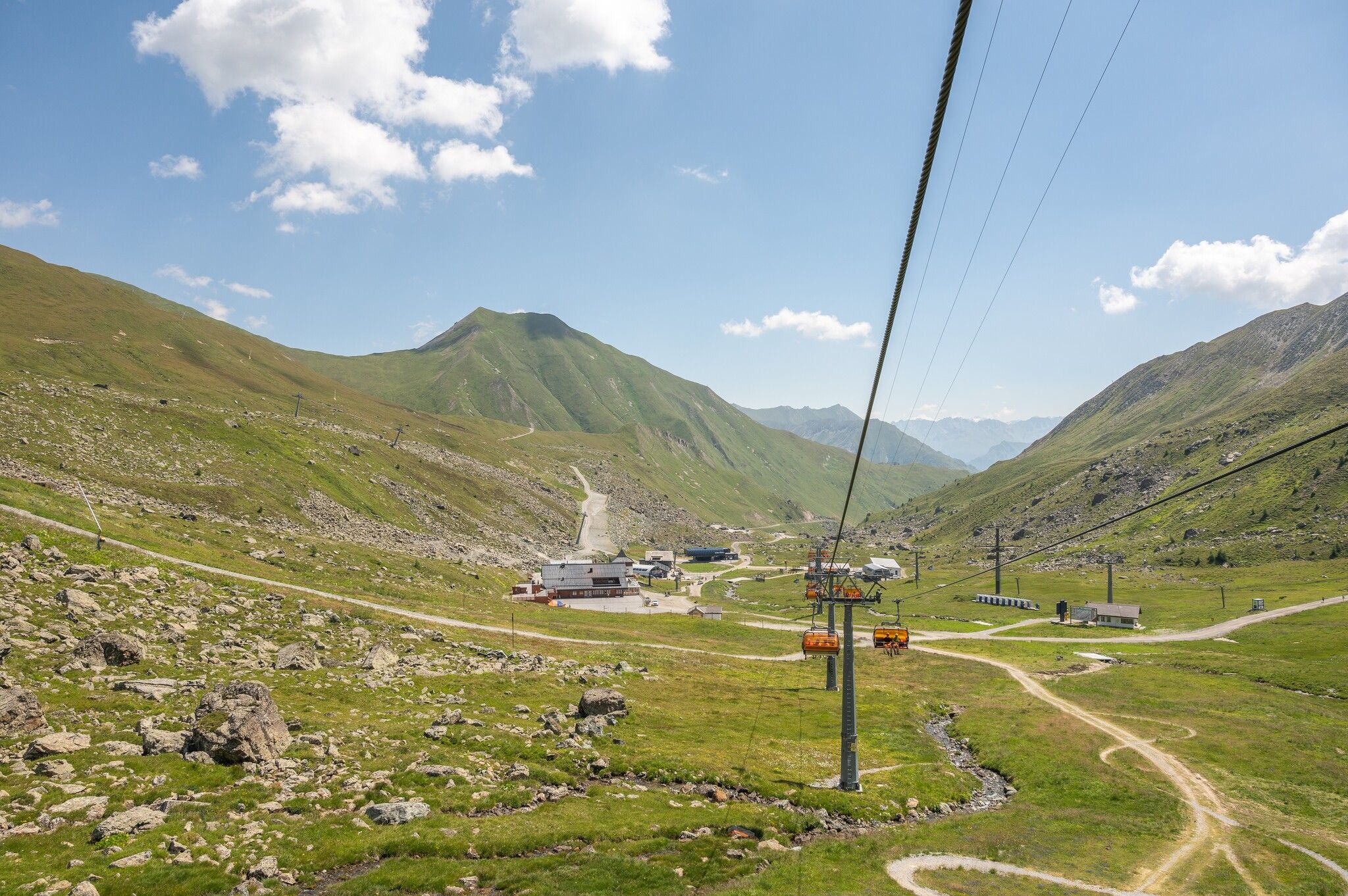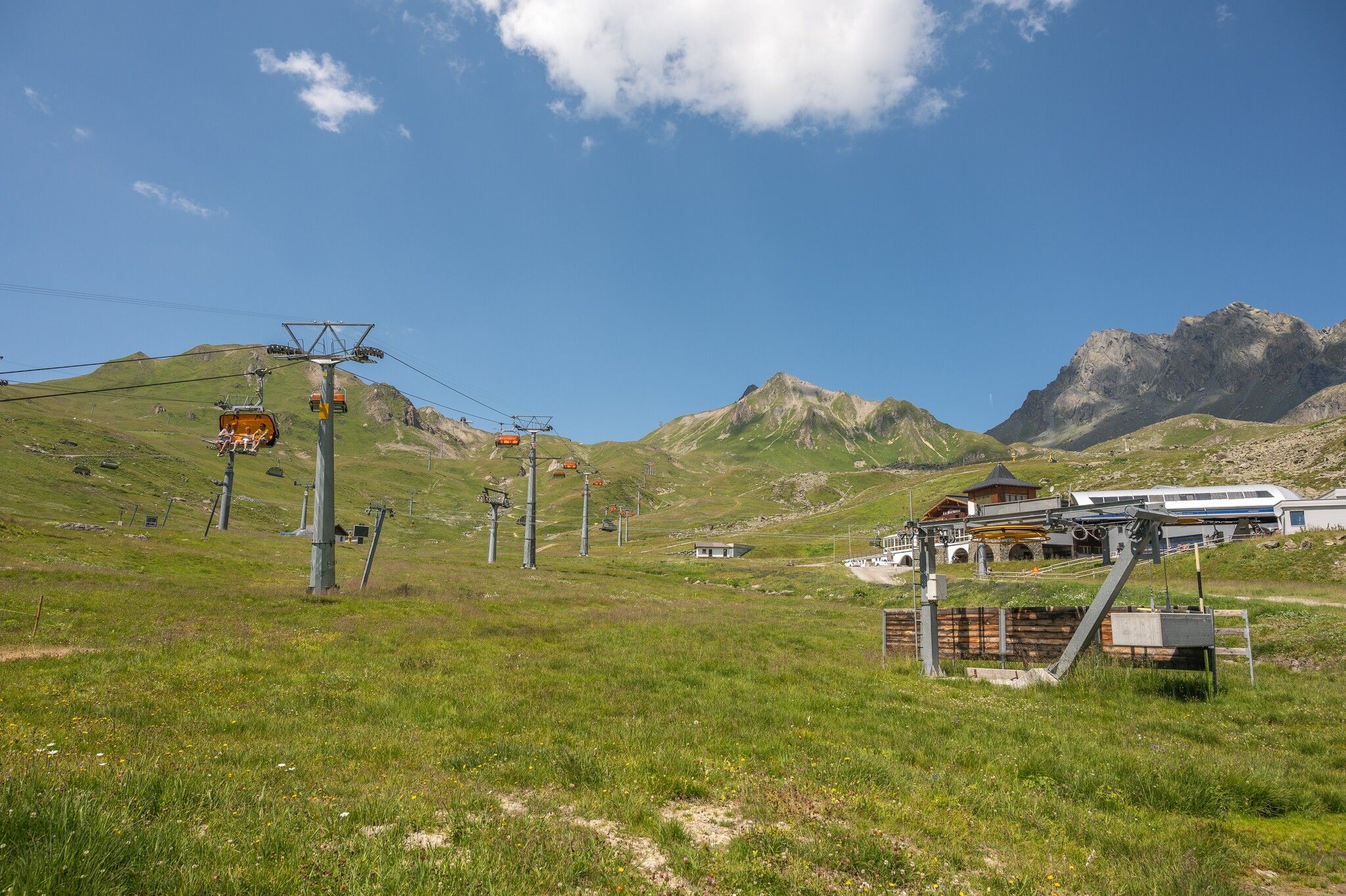 From the valley station of Diasbahn cable car, follow the signpost towards Samnaun, passing