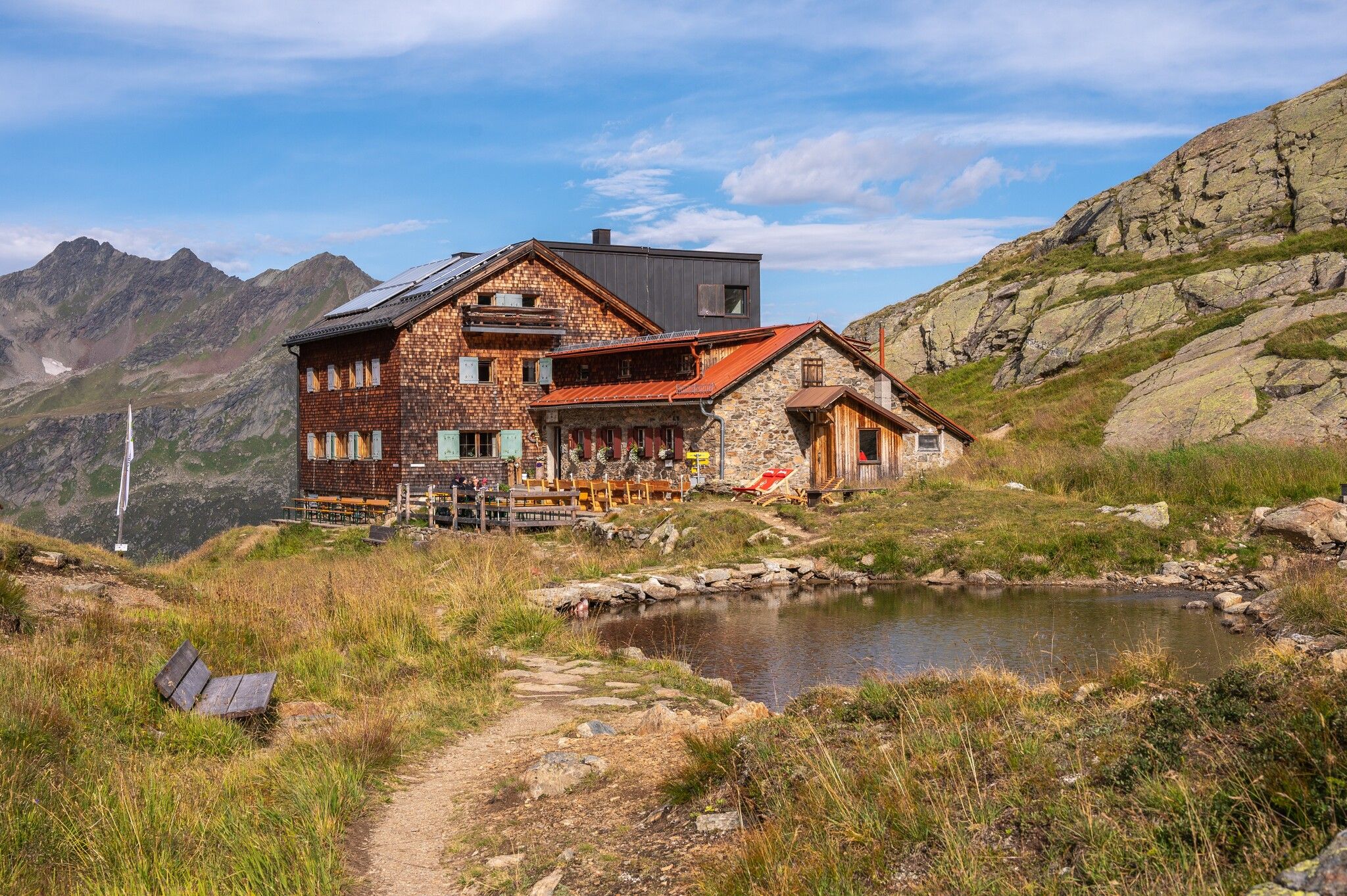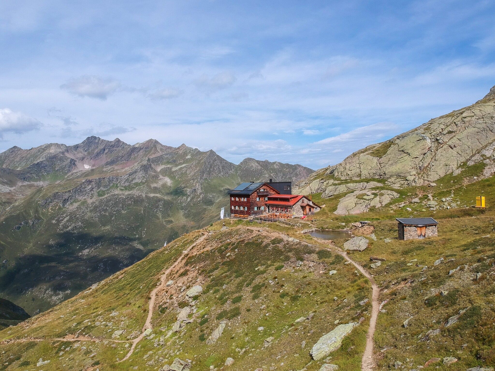 Graf-Hütte lodge and the pertaining small lake are located at 2,375 metres above sea level, perched