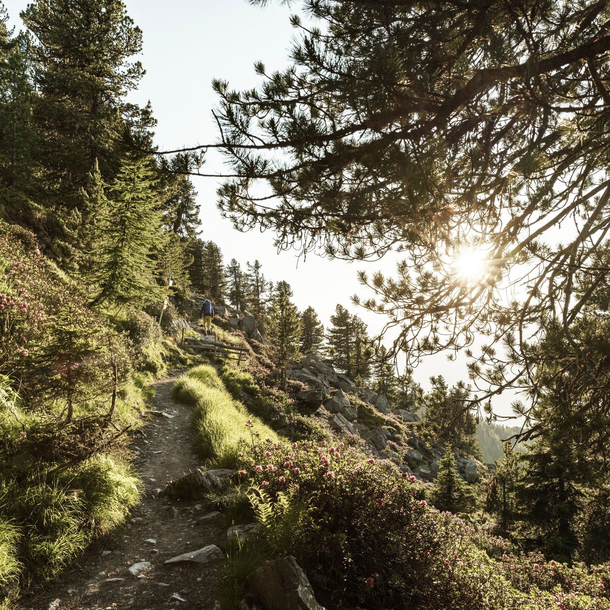The Zirbenweg at an altitude of 2000 m enchants both during the blooming of the alpine roses and in the colorful autumn.