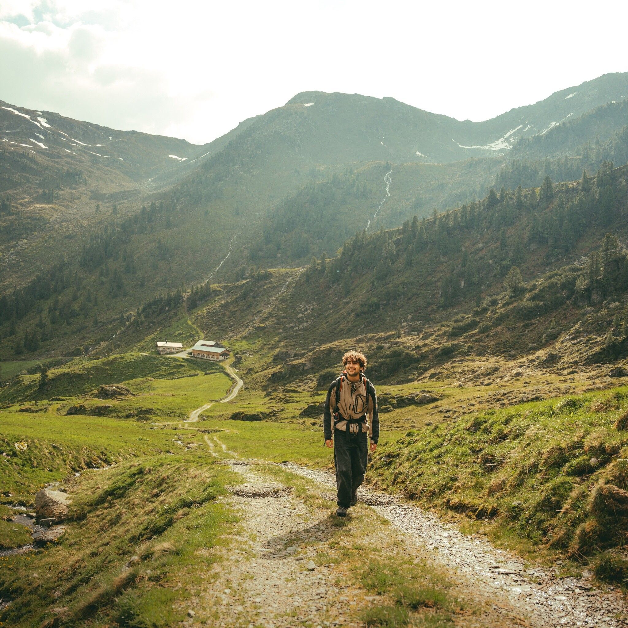 The route starts at the barrier in the Luegergraben. Directly at the Hochberg parking lot, the path first leads through the forest and then through the wide alpine pasture area along a forest road to the first destination, the Faulbaumgartenalm. The first 400 m elevation gain are achieved and those who want to take it easy can already stop here for the first time. It continues past the unmanaged Filzalm to the Steinbergalm. From the starting point, this is a total of 600 m elevation gain and about 2.5 hours walking time.