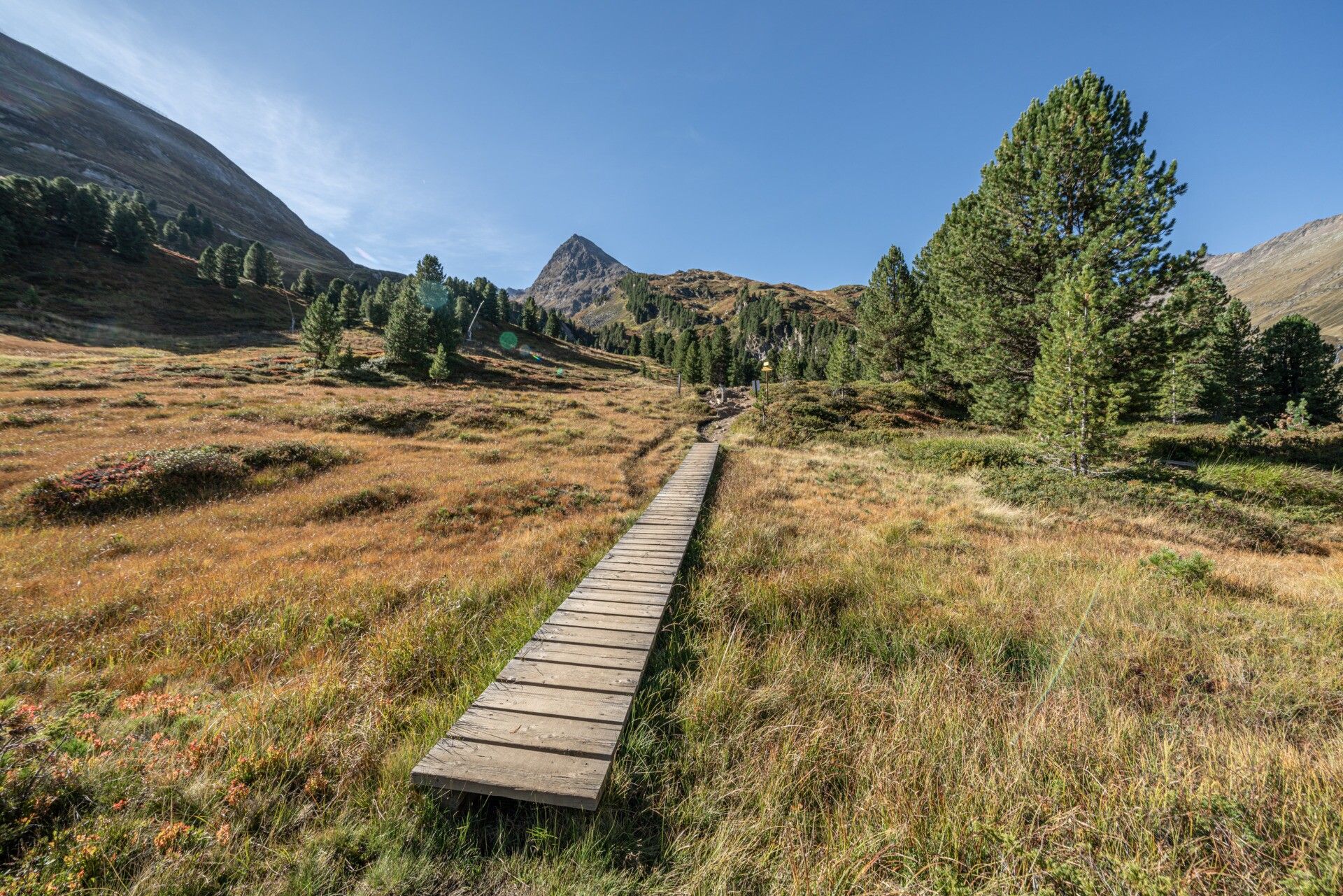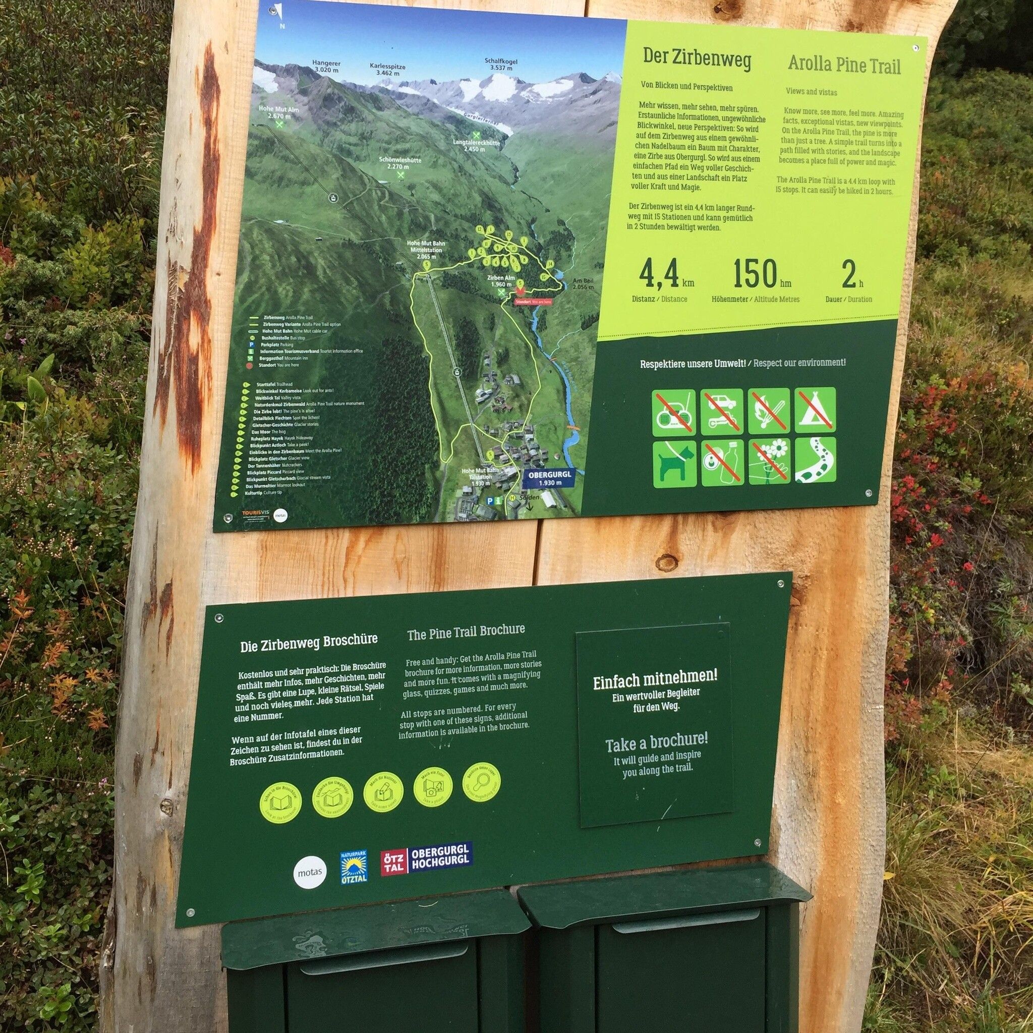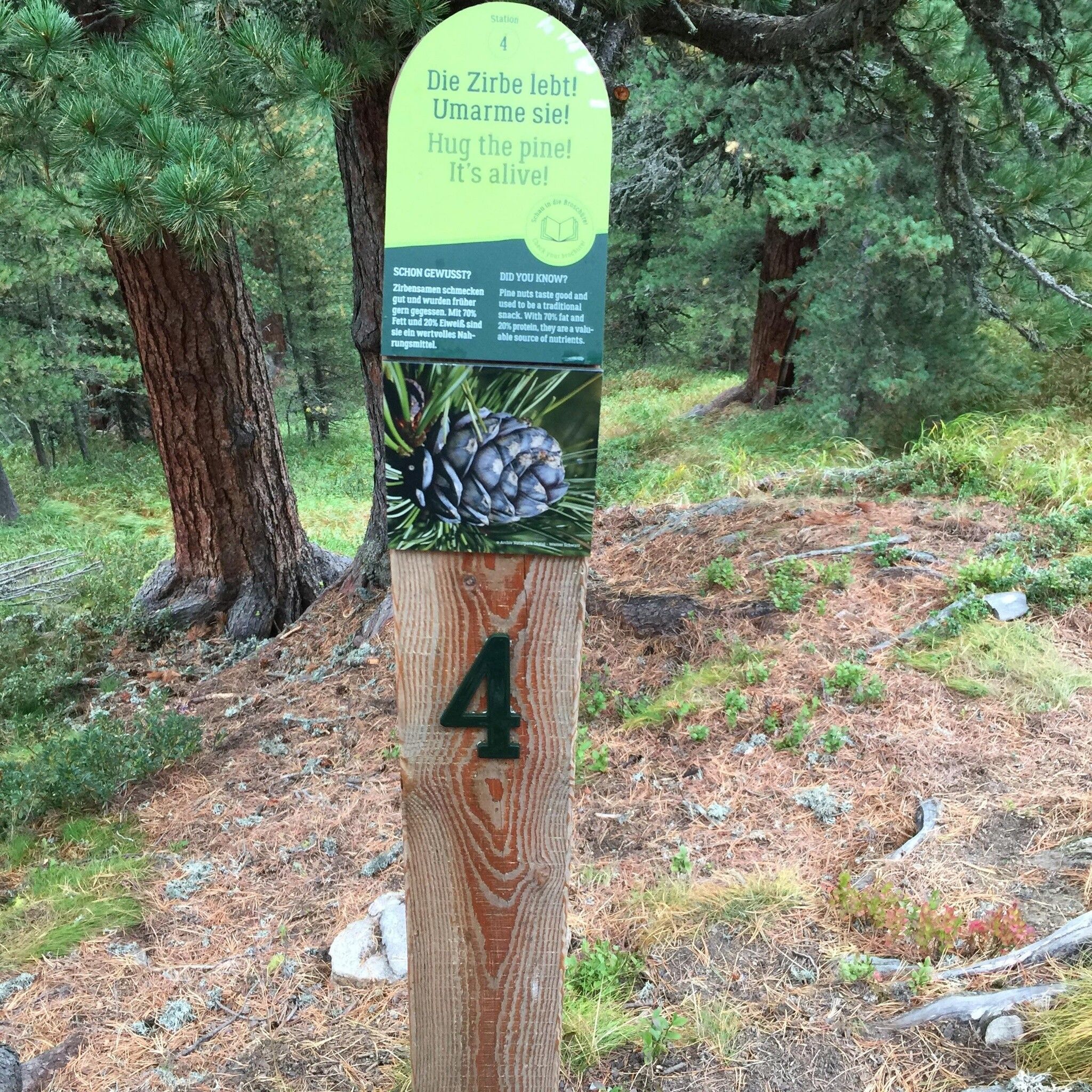 The themed trail takes you through the "Obergurgl Swiss stone pine forest". The stone pine forest in Obergurgl is a unique natural monument of remarkable beauty and ecological importance.