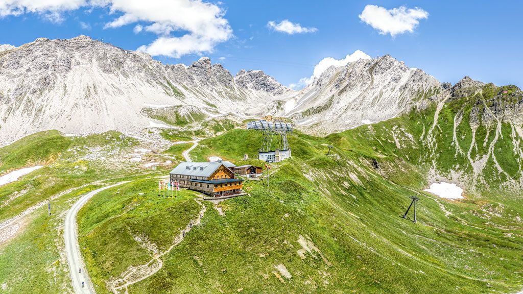 Take the cable car up to the Valluga Ridge. From the mountain station, head down the snow field in sweeping curves to the Valfagehrjoch. From there, head down to the Ulmer Hütte and continue on AV 645 to the Arlensattel. Here, turn right onto the Galzig-Panoramaweg (23) and head to the Galzig mountain station. Head west after the Galzig mountain station, following the signs down into the valley in the direction of St. Christoph. Alternatively, take the Galzigbahn lift to St. Anton.