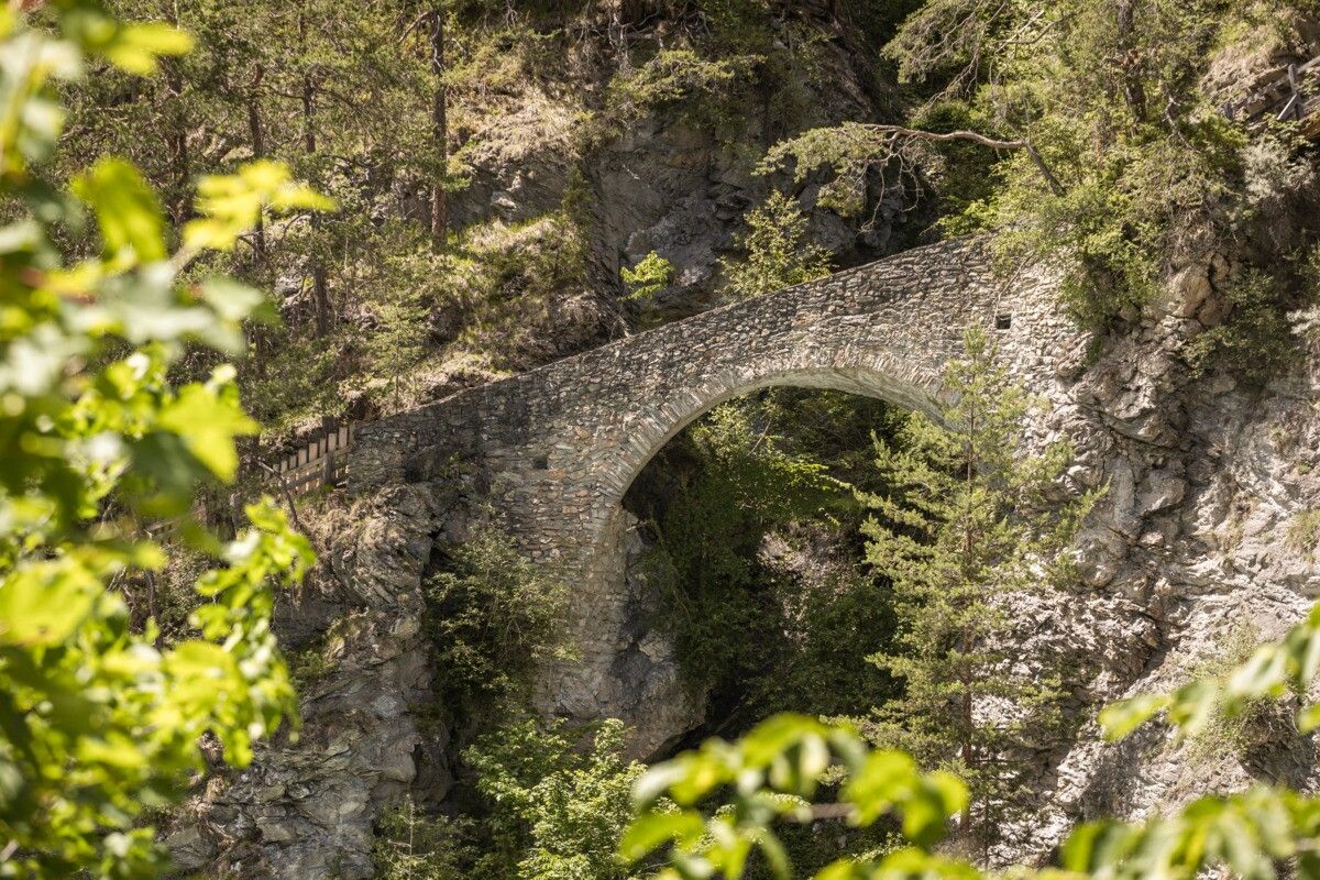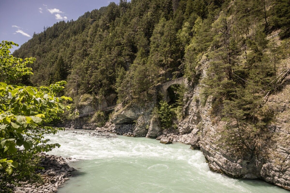 The Rieder section leads from Prutz to the Inn bridge. There the path branches off to the left behind the bridge and leads to the Wollspinnerei Schöpf (Frauns district). The path runs close to the Inn, soon climbs and leads through wild and romantic steep slopes to Untertösenes and on to Tschuppbach. Between Untertösens and Tschuppbach you pass the Roman bridge. Return on the same way or from the municipal office of Tösens with the post bus.