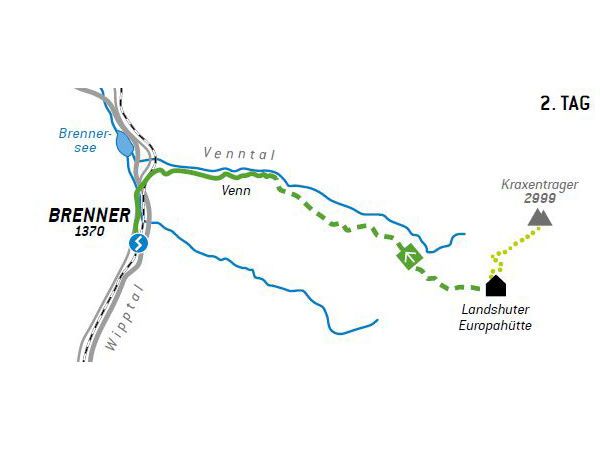 Stage 7: Bremer Hut - Innsbrucker HutDifficulty: difficult Length: 9.5 km Duration: 7:00 h Elevation uphill: 839 m See trailSee trail: Stage 7: Bremer Hut - Innsbrucker Hut