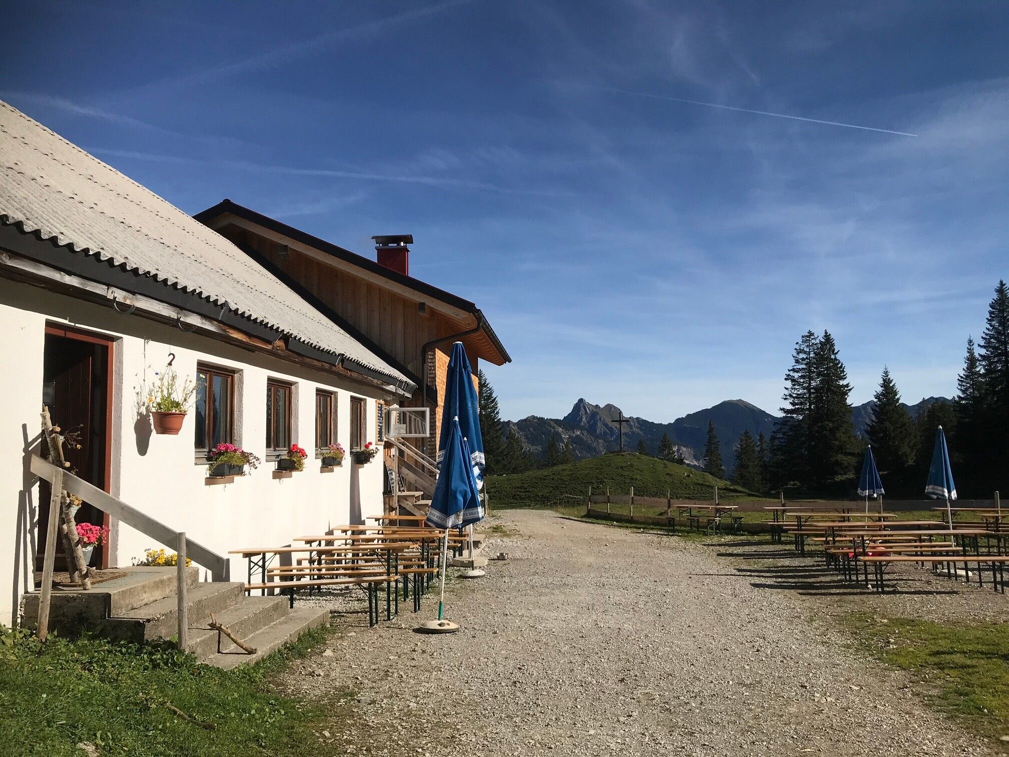 Starting from Zöblen-Katzensteig, we hike southwards. After the last houses, it slowly goes a bit uphill. The Pontental begins. We continue to follow the path. Slowly but constantly, we gain some altitude. After the tree line, we gradually reach the mountain ridge. Here, there is the option to hike to the Rohnenspitze or the Ponten. We keep right, pass the mountain rescue hut, and shortly after arrive at the Zirleseck. Enjoy the wonderful view of the surrounding mountain peaks here. We descend to the Älpele alpine hut. After a short break and a delicious snack, we continue downhill. Shortly before the first houses, we keep left and hike on the high path back to the starting point at Zöblen.