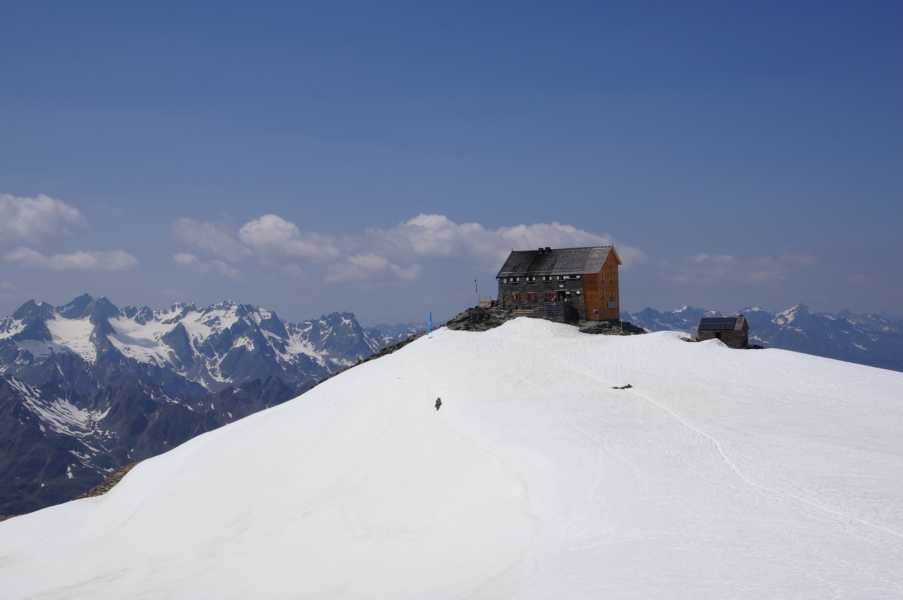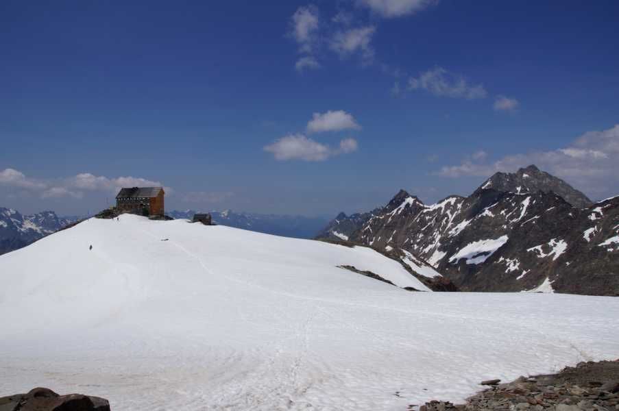 The Hochstubaihütte (3,173 metres) is a mountain hut in the Stubai Alps located on the glacier high above Solden. It is a good starting point for challenging walks and hikes.