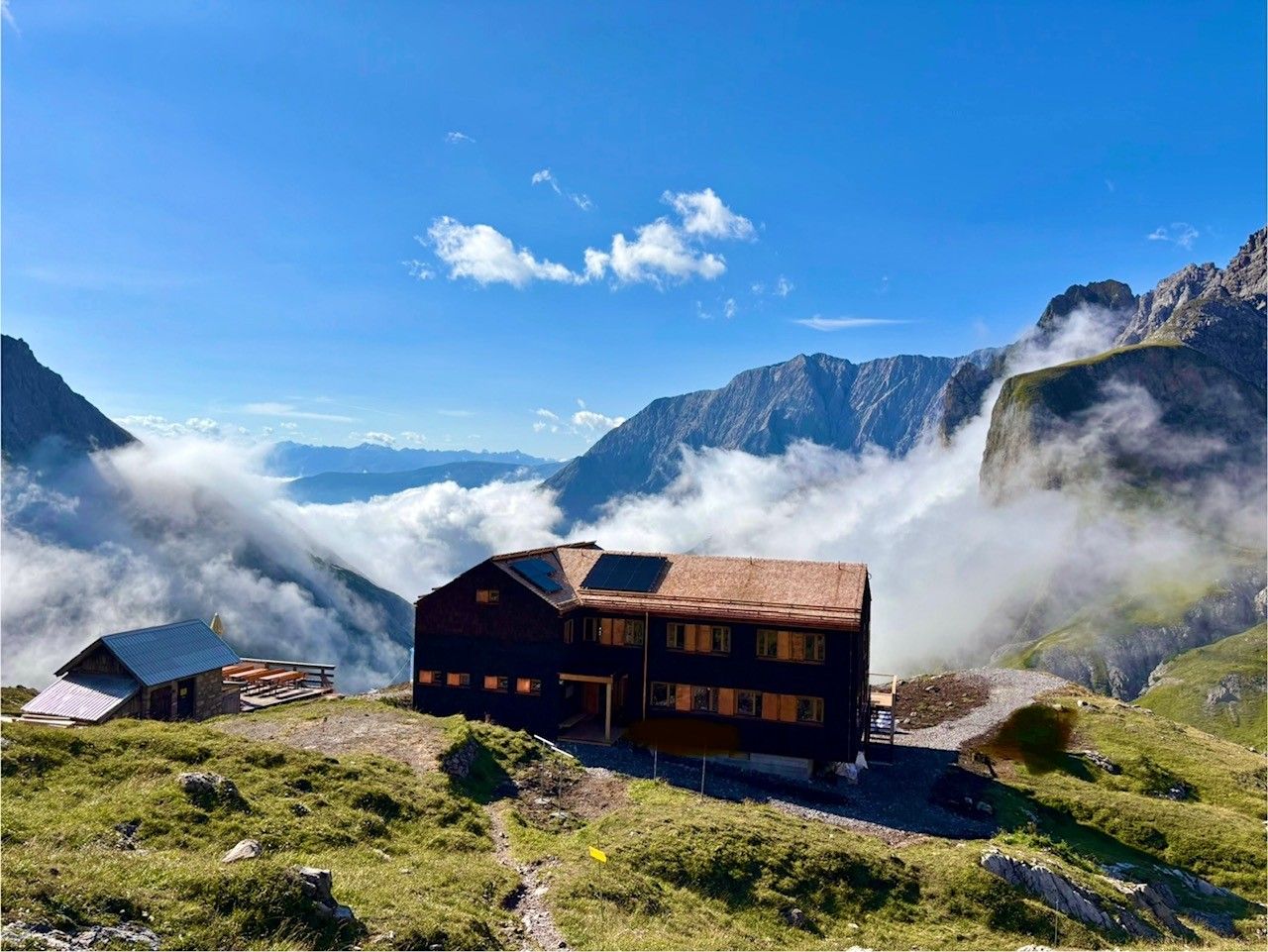 From Leutasch via Wangalm in 5 hours, from Oberreintalhütte (Franz-Fischer-Hütte) in 5.5 hours