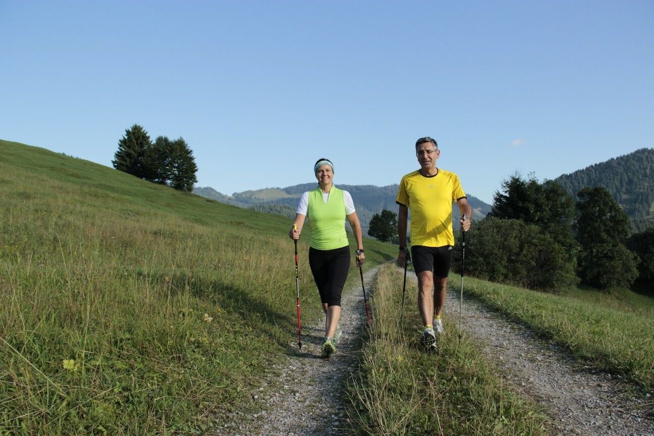 Along meadows, over green alpine pastures, by sparkling mountain lakes... Walking and running in the Tannheimer Tal is not only the best training for the body but also balm for the soul. The starting points for all those eager to move are located in the six villages Tannheim, Grän-Haldensee, Nesselwängle-Haller, Zöblen, Schattwald, and Jungholz. From here, walkers, Nordic walkers, and runners follow the signposts. They are easy to recognize: little figures with poles. Moreover, all routes, just like ski slopes, are classified into the categories black, red, and blue. This optimal marking contributed, among other things, to the fact that Europe’s probably most beautiful high valley has been officially called the "Running and Walking Competence Center" since 2005.