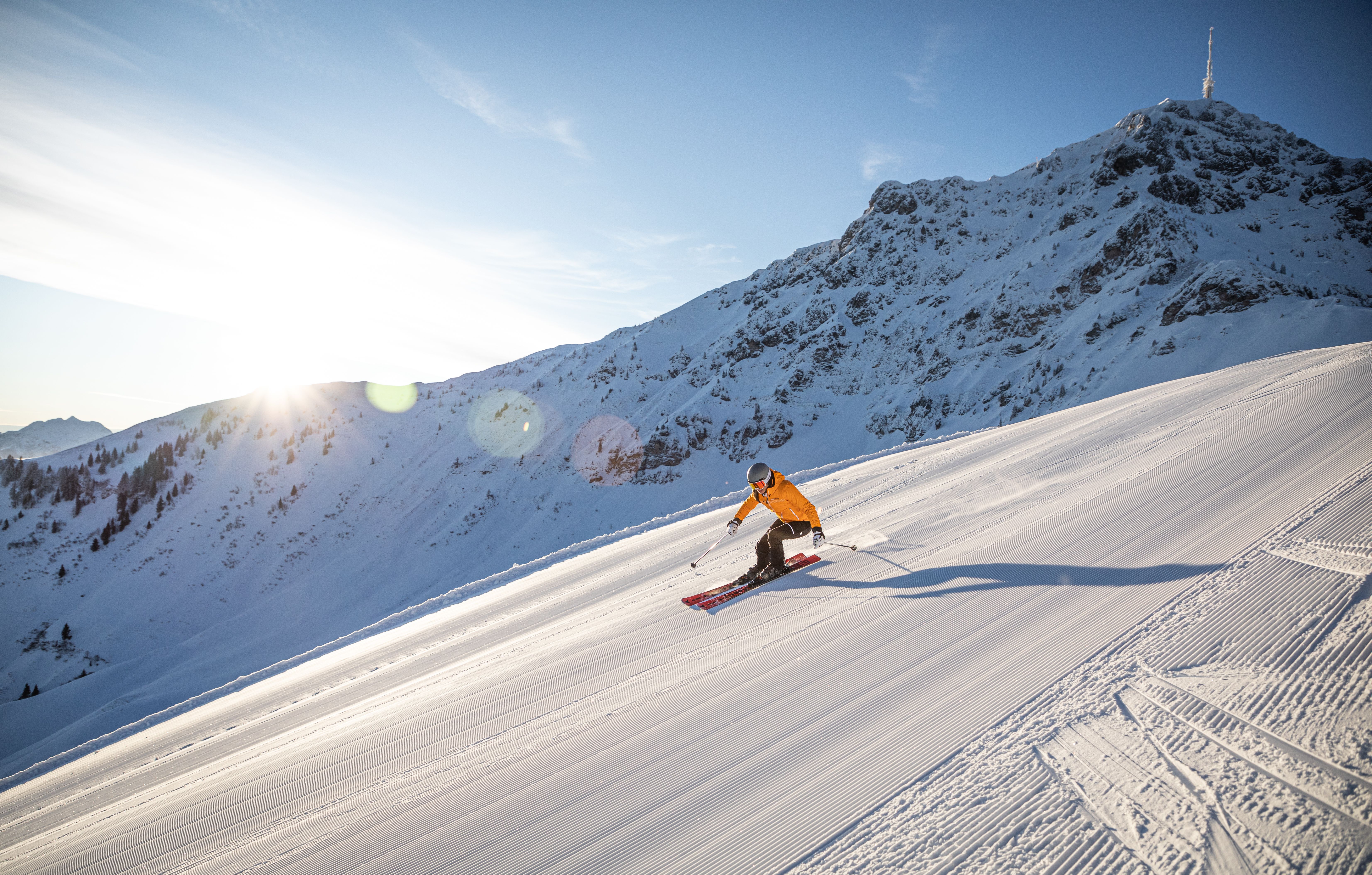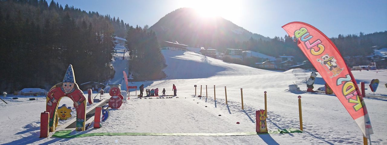 The Hotel Lärchenhof in Erpfendorf, east of the Wilder Kaiser, can offer its guests - as well as external visitors - the privilege of its own ski lift. As soon as you step out of the hotel door, you are already on the slopes. In addition to an easy slope, there is also an intermediate slope. There is a ski school for beginners and a conveyor belt for children to help them up, as well as a fun ski carousel.