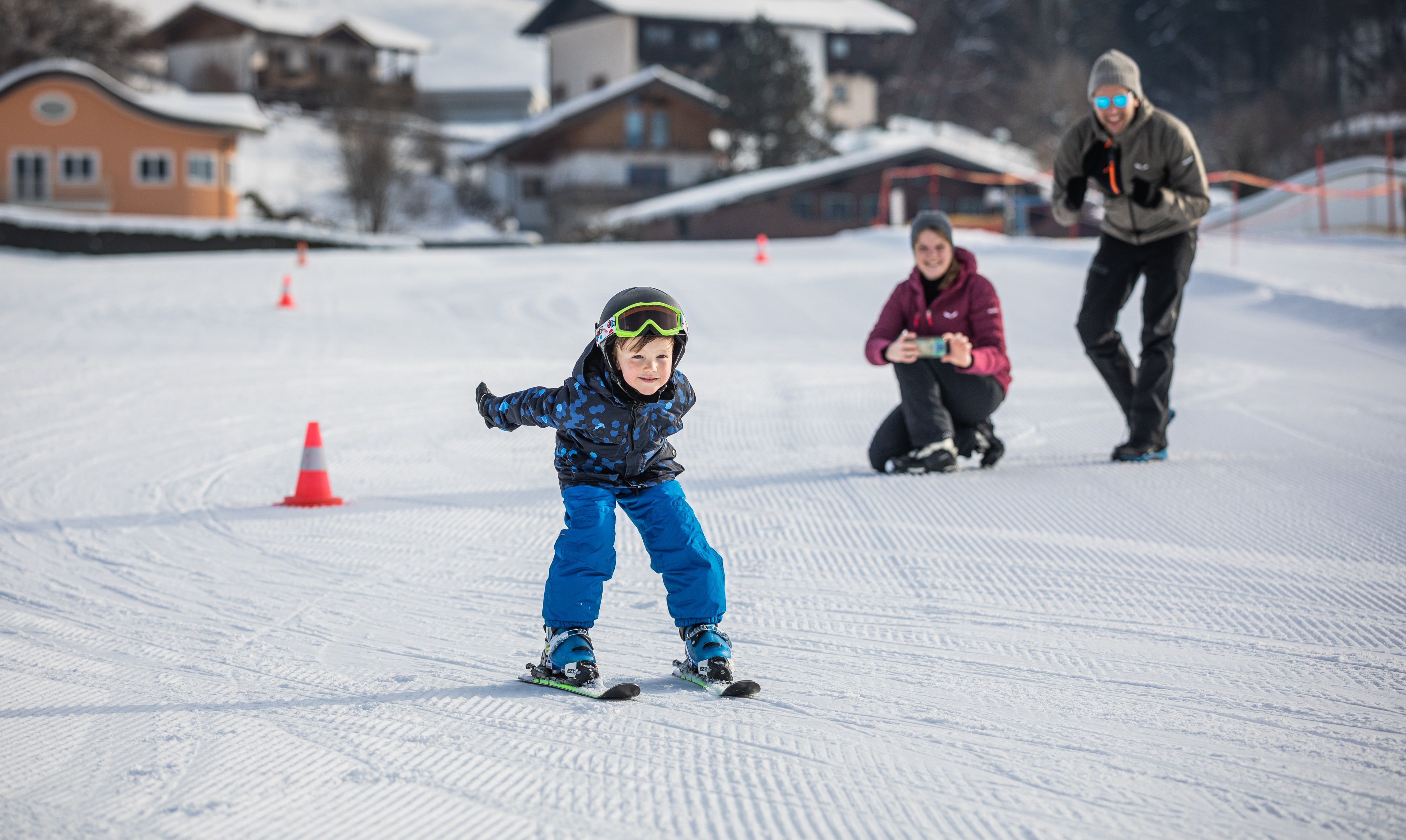 The St. Johann in Tirol cable car ski area on the snow-sure north side of the Kitzbüheler Horn is one of the more compact types, but at the same time has a lot to offer. It is relaxed and family-friendly, with many blue pistes, especially at lower altitudes, and a good selection of red pistes for advanced skiers. Access to the ski area is extremely convenient: in Oberndorf in Tirol, in the area close to the center of St. Johann in Tirol and at Eichenhof, there is the option of taking the cable car up. A particular highlight is the black piste, an FIS run with the most beautiful panoramic views and a difference in altitude of 1,000 meters. There are a total of 10 ski lifts and 40 kilometers of pistes. The highest point is the Harschbichl at 1,604 meters above sea level, which is accessible by cable car from three sides. Several free practice lifts make it easier for children and beginners to get started on the slopes. Kids learn to ski in a playful way with the region's mascot "Yappy Yapadu". Yappy is a lucky charm, best friend, mascot and companion in the St. Johann in Tirol region of happiness.