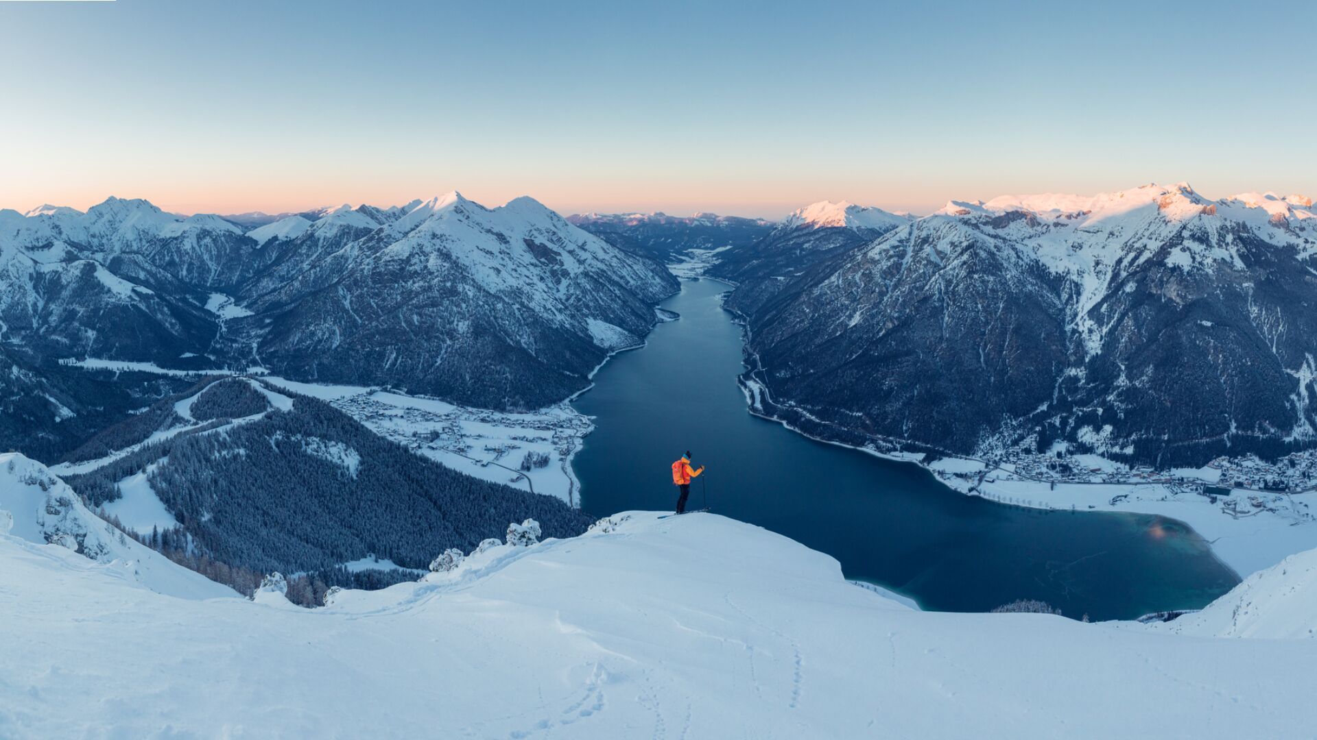 Splendid views of Lake Achensee. The last stage on the ski piste requires good technical skills and crampons.