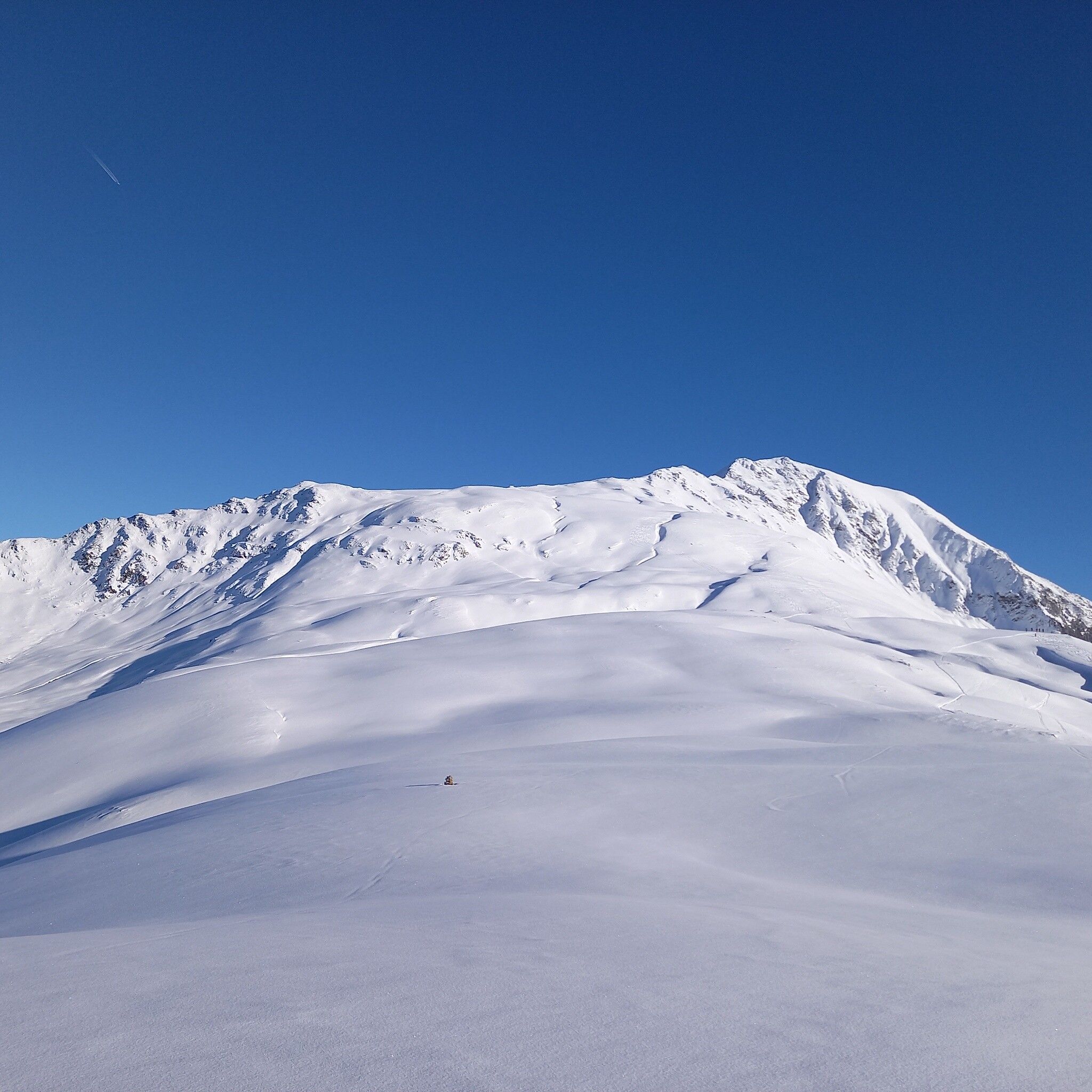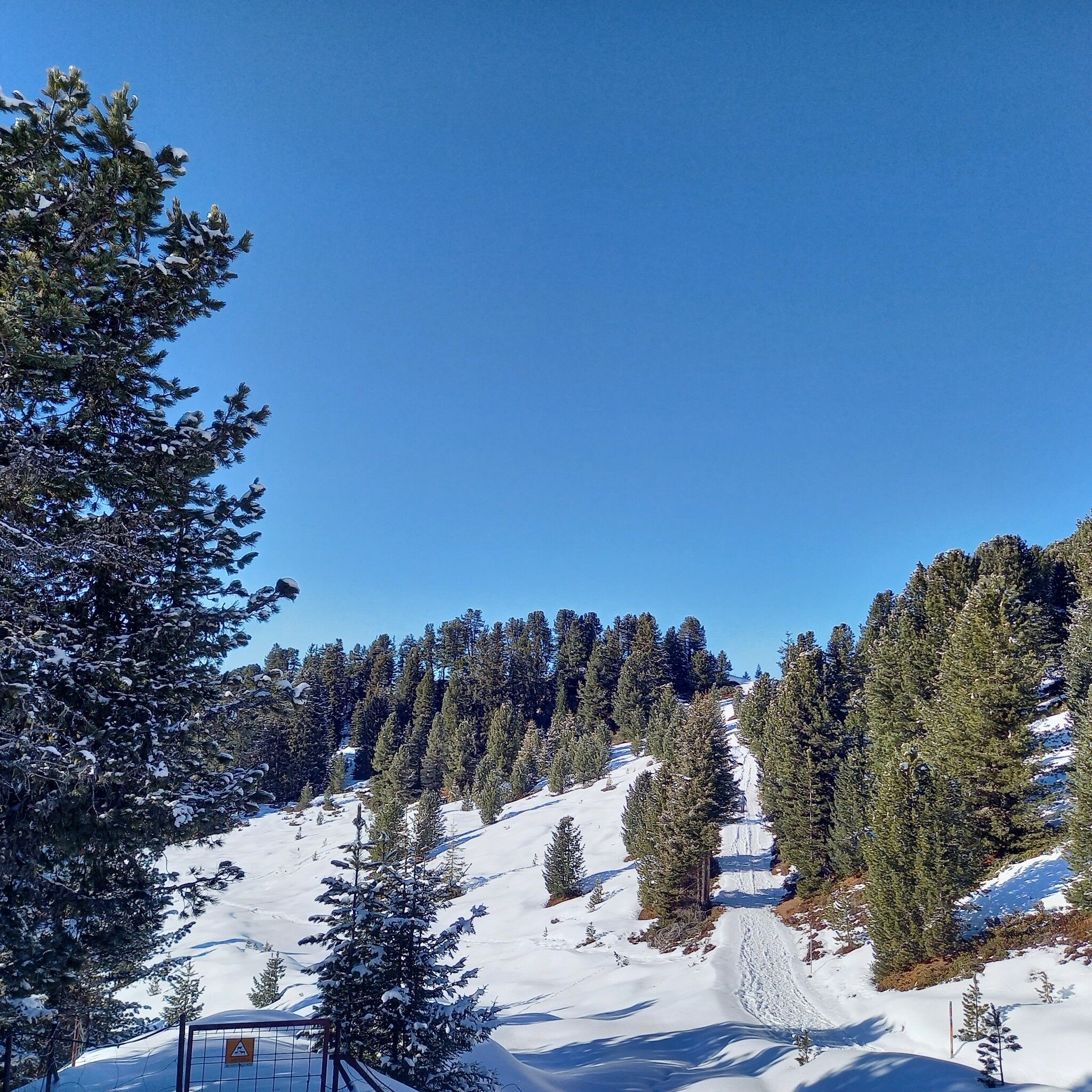 From Marlstein along the prepared winter hiking trail towards Grünwaslekreuz to the first left hairpin bend. Straight ahead east until a wide clearing is reached. Along this, on the left side about halfway uphill and then turning left through sparse forest northwards to the tree line. On a clearly distinct and undulating ridge uphill northeastwards to the main ridge. Now always eastwards, uphill over a short steep section, past a stone cairn to Schafjoch where the broad ridge narrows to a crest. Continue along the narrow crest into a saddle northwest of the summit structure and cross a short steep slope north of the summit (key point). Around the summit structure and through the upper part of the Schneetal coming from the east into the saddle between the two summit peaks. Turn left, easy ascent to the highest point without summit mark and then briefly back to the summit cross on the second summit peak.