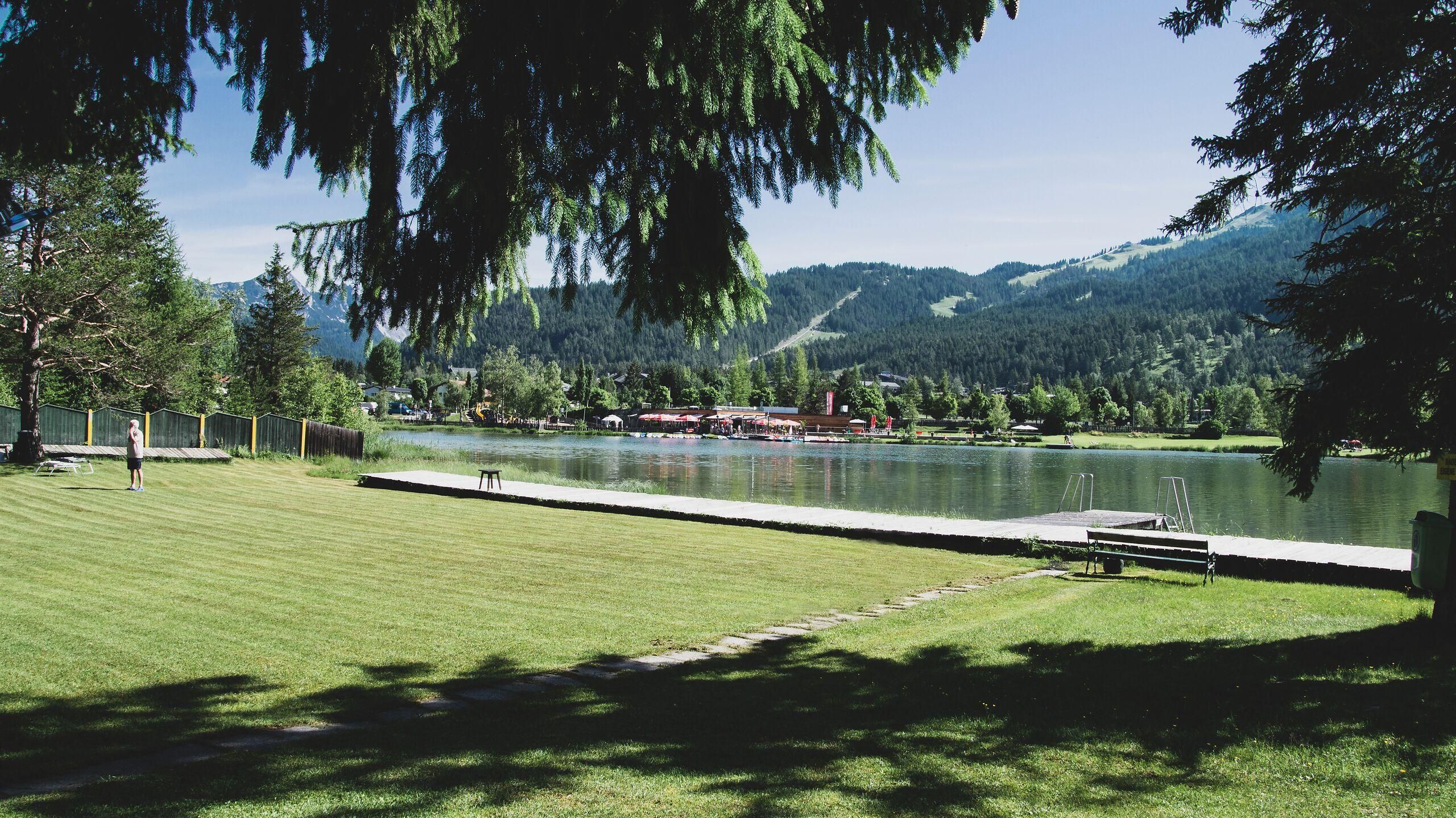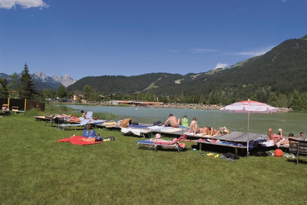 The Waldbad Sonja features a beautiful sunbathing area with direct access to the Wildsee. A playground and various outdoor sports facilities combine swimming fun and movement in a playful way.