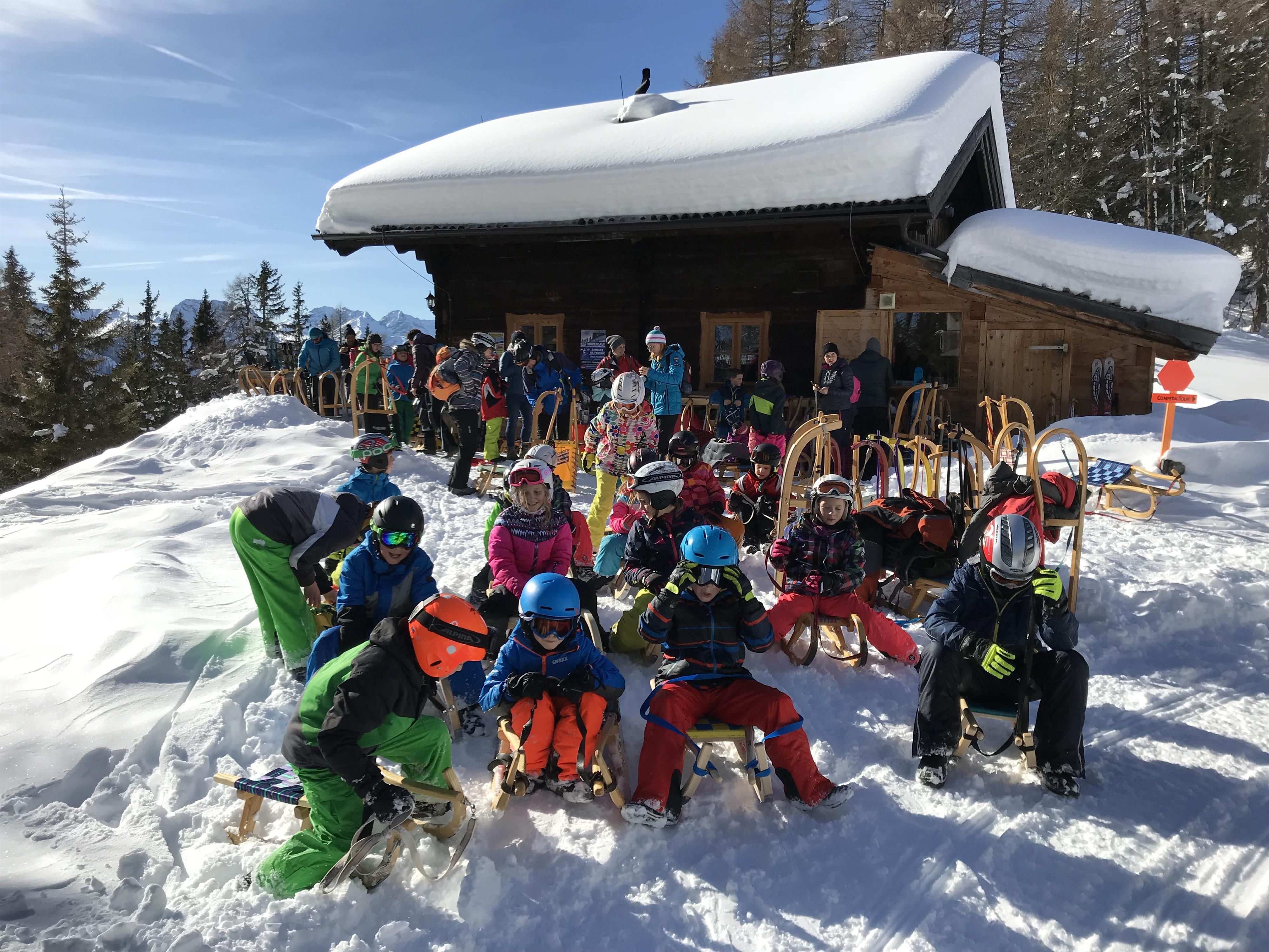 The Compedal ski hut is located at the start of the toboggan run (please note the opening hours or call ahead to check). There are popular touring destinations above the ski hut, so you can expect to encounter downhill skiers on the ascent!