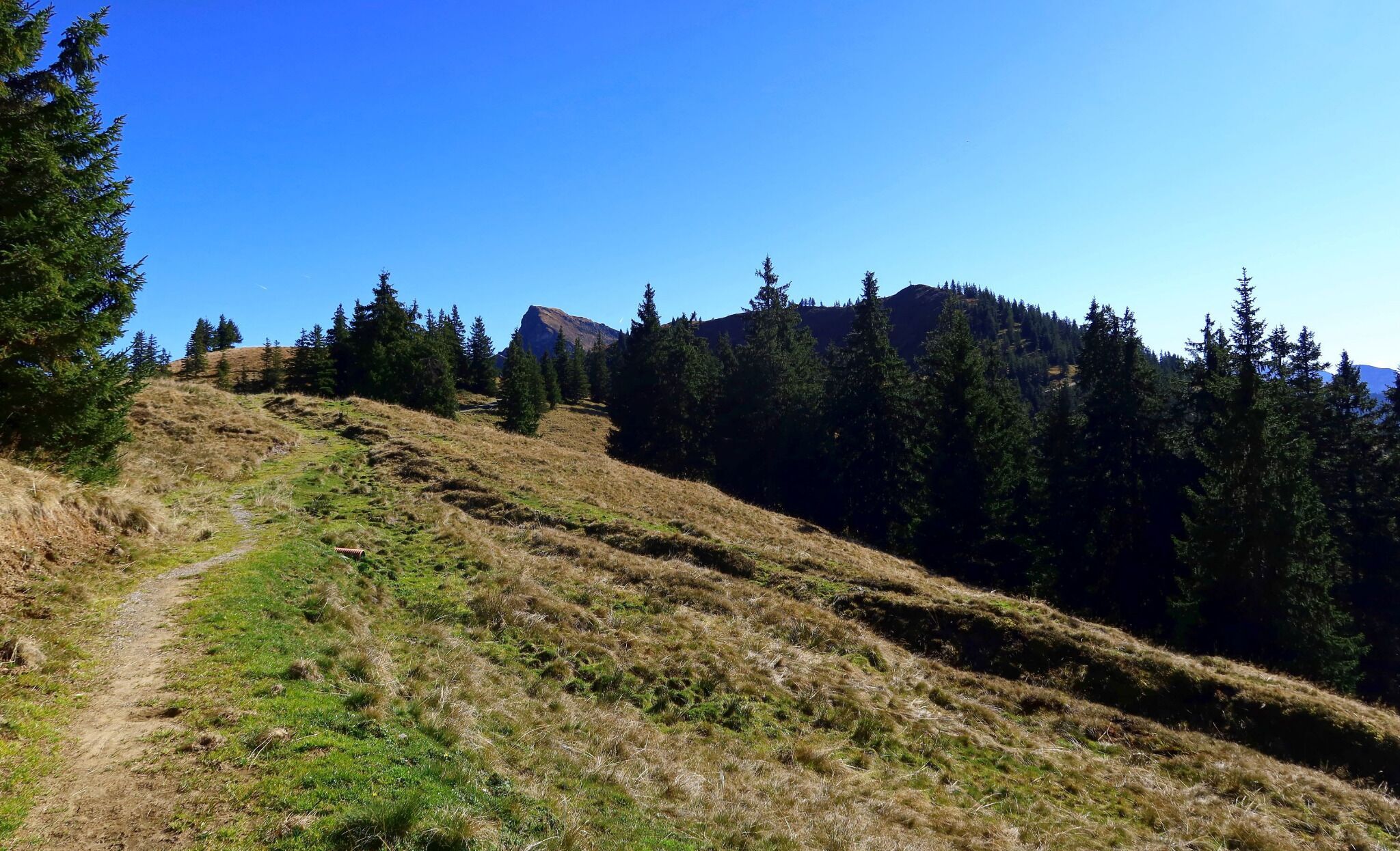 Follow the signs towards Hochwildalm. Before reaching Gebrajoch, veer slightly right towards the valley. Briefly traverse a forest road, then return to a beautiful woodland trail leading to Hochwildalm, a perfect spot for a rest. Continue from the Alm towards Oberaurach, passing through the wildlife park. From Aurach village center, ascend briefly and then alternate between trails and asphalt, returning to the Bichlalm lift valley station.