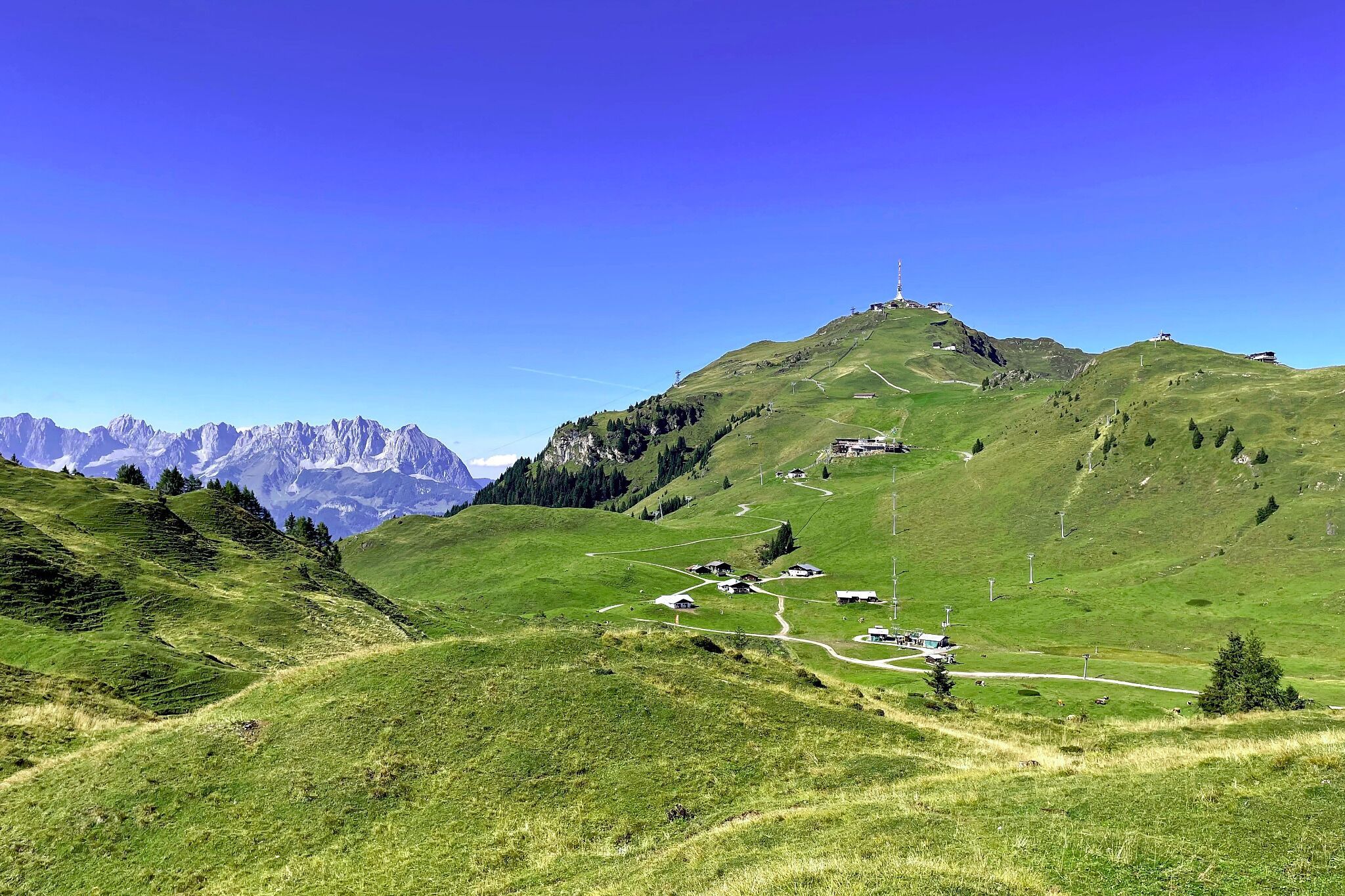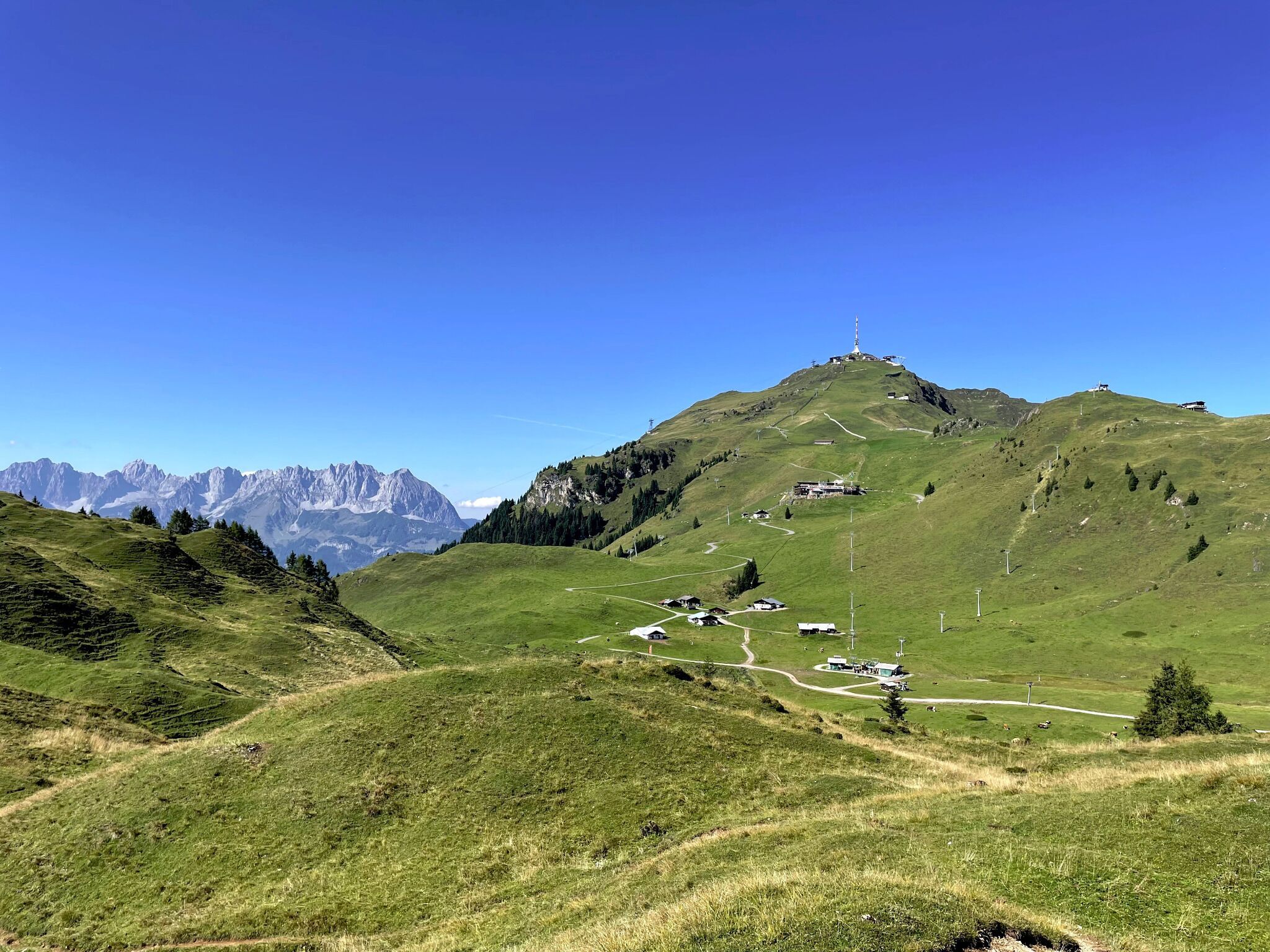Take advantage of KitzSki's excellent infrastructure, which saves significant elevation gain and provides a pleasant experience for less-trained trail runners and beginners. Start by taking the Hornbahn lift to Alpenhaus. From there, follow a short stretch of asphalt road and then a trail descending into the Trattalmmulde and further onto the Wilden Haag, a ridge with stunning views of Kitzbühel and the Hohe Tauern.