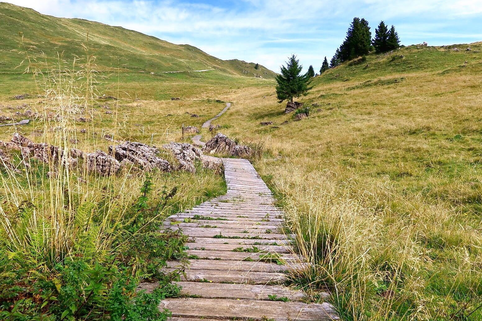 Continue on a flowy trail heading south towards the Karstweg. This path winds through an ancient karst area known as "Wiener Stadt," featuring sections that cross wooden bridges. At the end of the Karstweg, return to Alpenhaus, where you can enjoy refreshments with a fantastic view before taking the gondola back down to the valley.