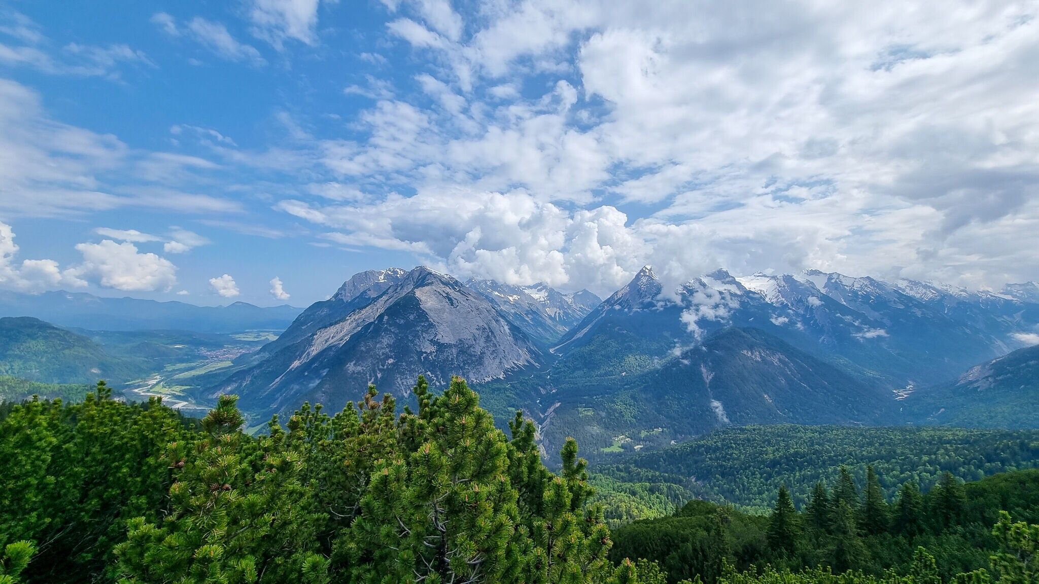 The trail then continues for the last 200 meters of elevation gain to the Zäunlkopf. Shortly after, on the way toward Mittagskopf, a short detour (about 10 minutes) to the "Schöne Aussicht" viewpoint is well worth it, offering breathtaking views into the Karwendel valleys.