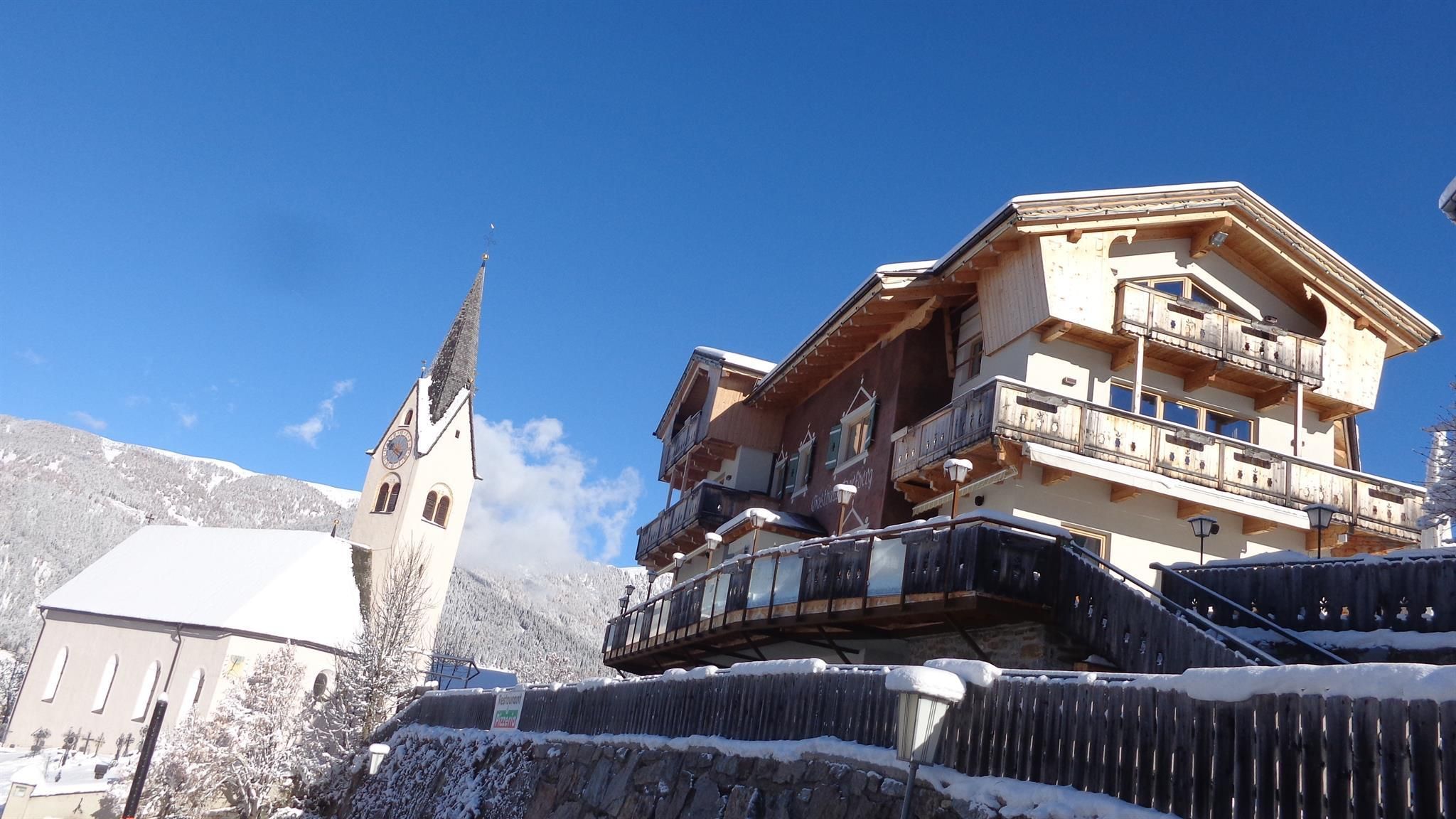 The winter walking path in a sunny location links the village centre of Kartitsch with St. Oswald. On a total length of around 1.5km, it affords a fabulous all-round view in all directions: into the Hochpustertal, towards the Carnic main Alpine ridge and into the eastern Tyrolean Gailtal, with an excellent view also of the 5 valleys that one can explore from Kartitsch. Resting places all along the path invite you to take a break. A flat walking path that is easy for anyone and offers plenty of panoramic views. Connection possibilities: long-distance hiking trail Dorfberg.