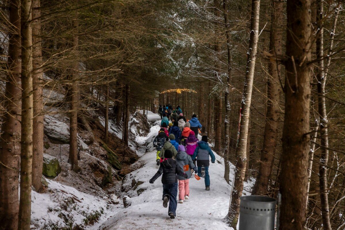 Magical winter walk along the illuminated “Waldgeheimnisse Badsteig” forest trail with interactive stations.