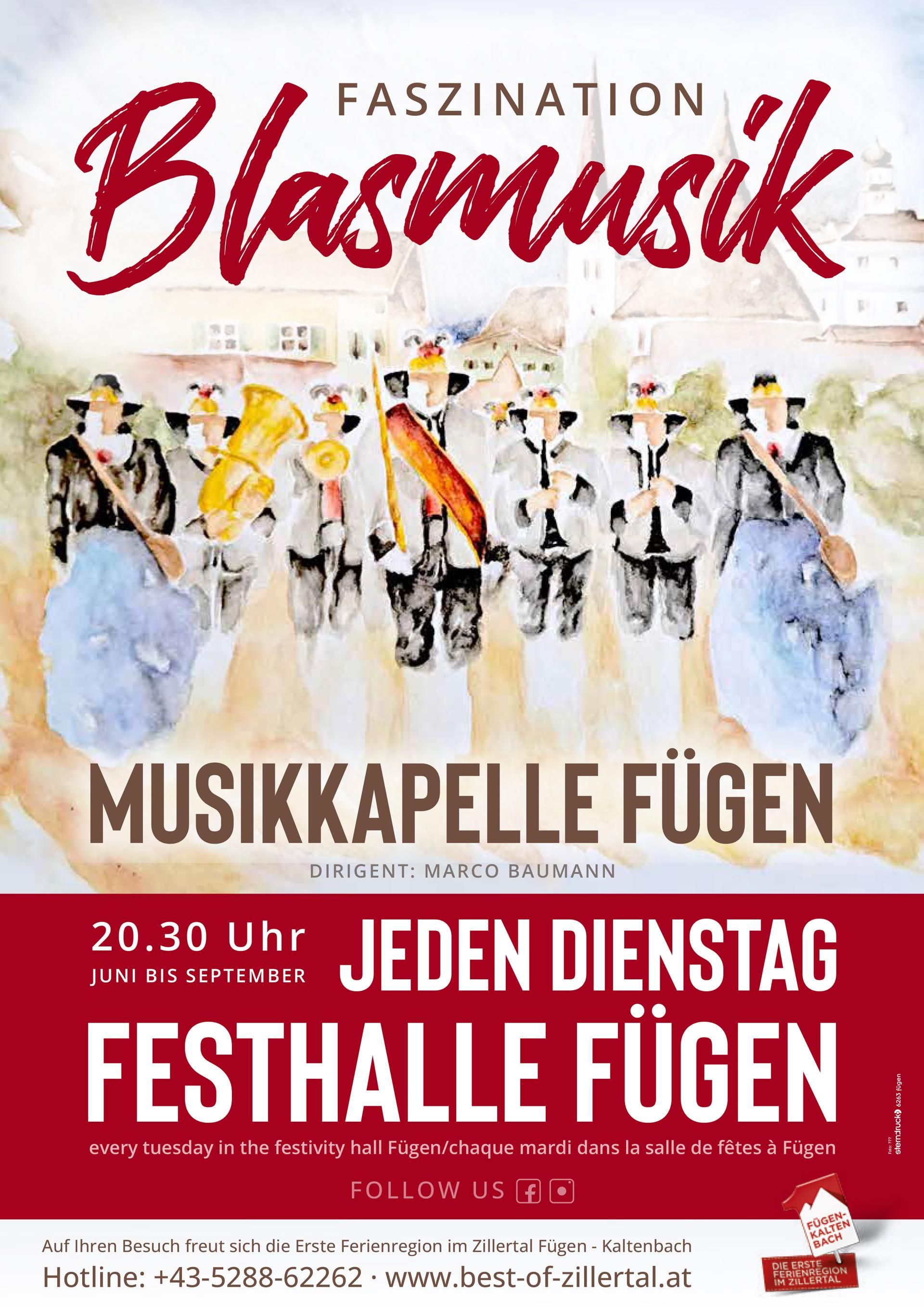 Plakat © MK Fügen Concert of the local brass band FügenPlace: Fügen : 16. Jun 2026 - 22. Sept 2026 see the eventsee the event: Concert of the local brass band Fügen