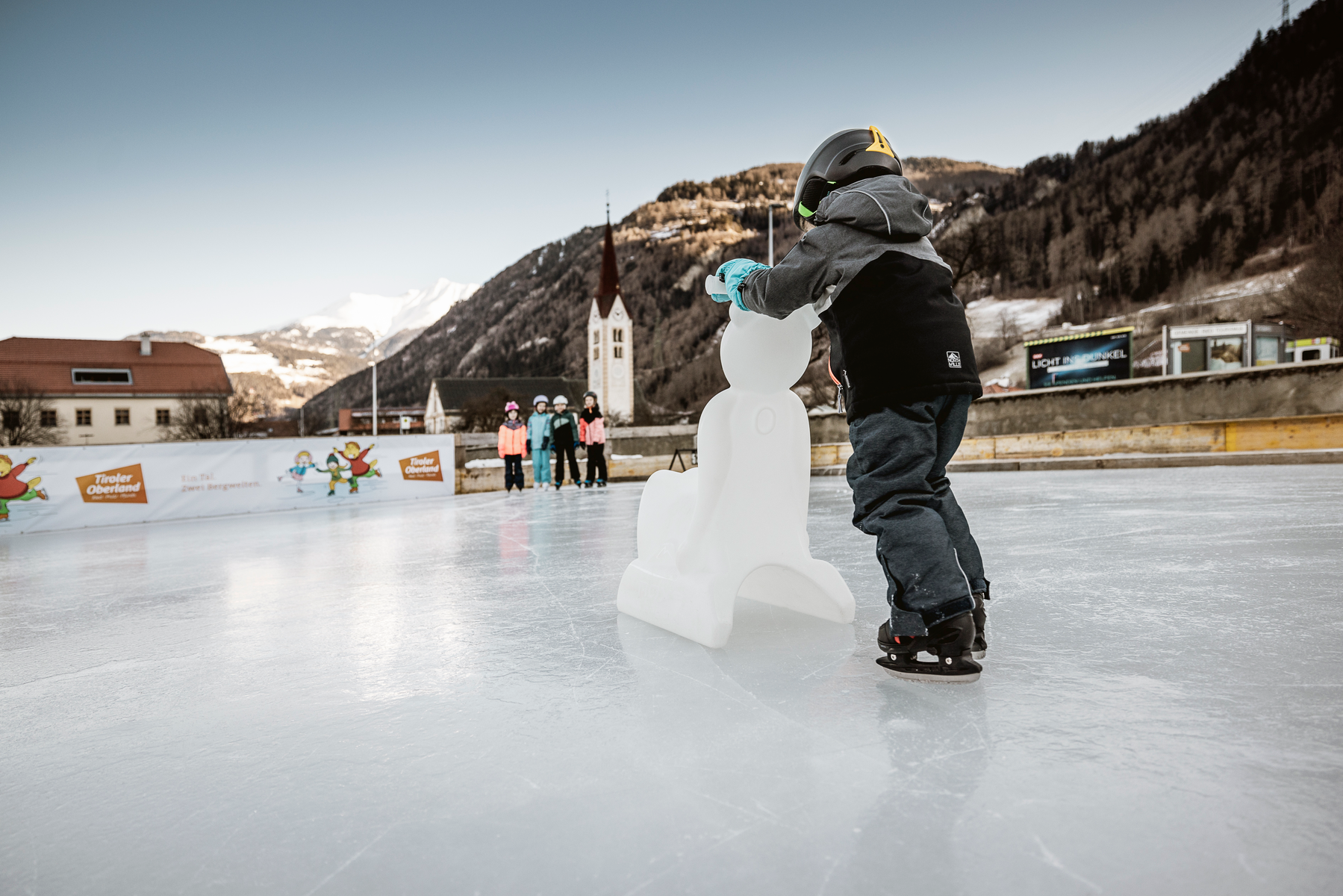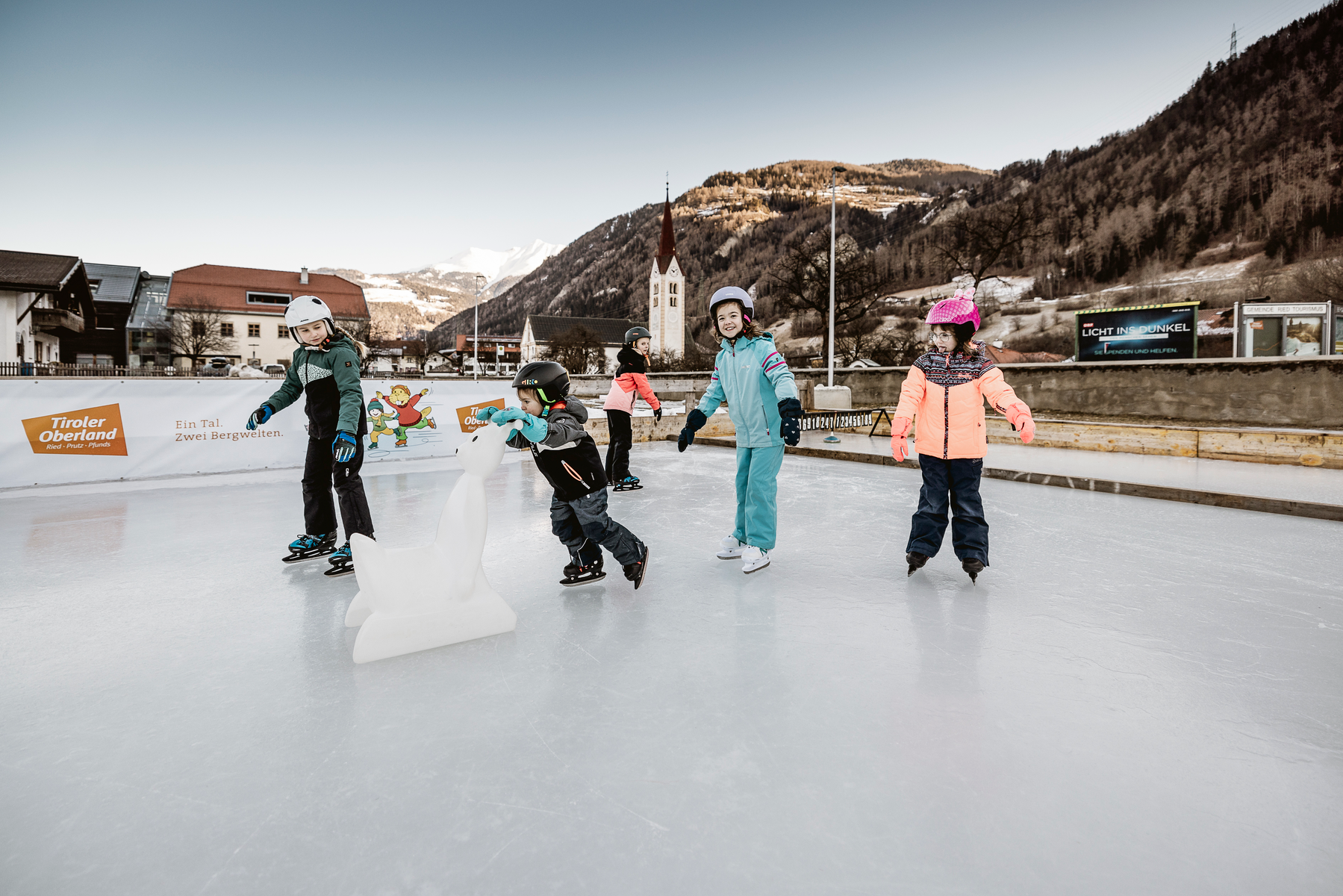 Ice skating directly in the village center of Ried