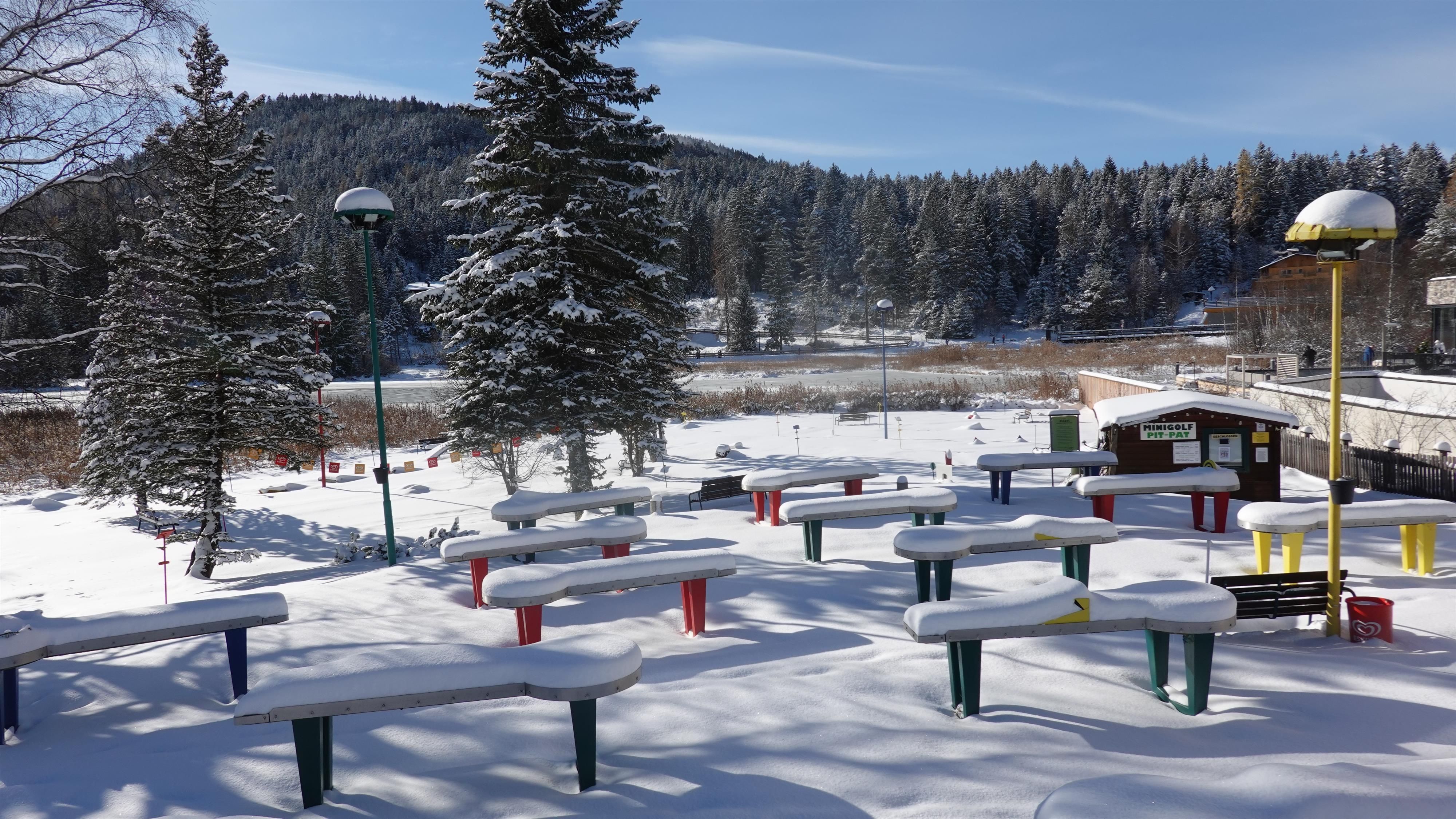 The mini-golf and Pit-Pat facility is currently in winter break. Located on the shore of Lake Wildsee in Seefeld, the entertaining mini-golf and Pit-Pat facility offers a mix of billiards and mini-golf.
