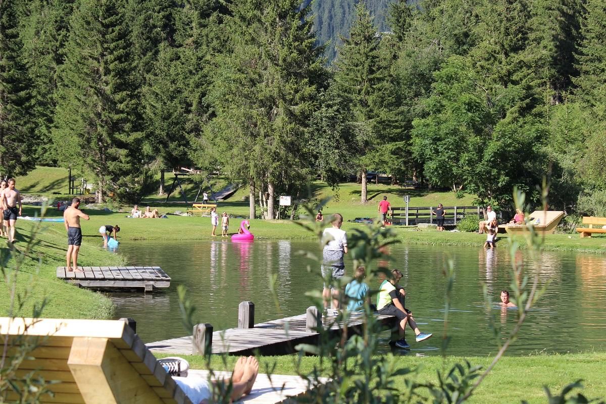 The leisure centre in Mühlboden is a popular meeting place on sunny days. It is located at the entrance to the Dorfer and Obertilliach valleys, where the Dorferbach stream flows into the Gail.